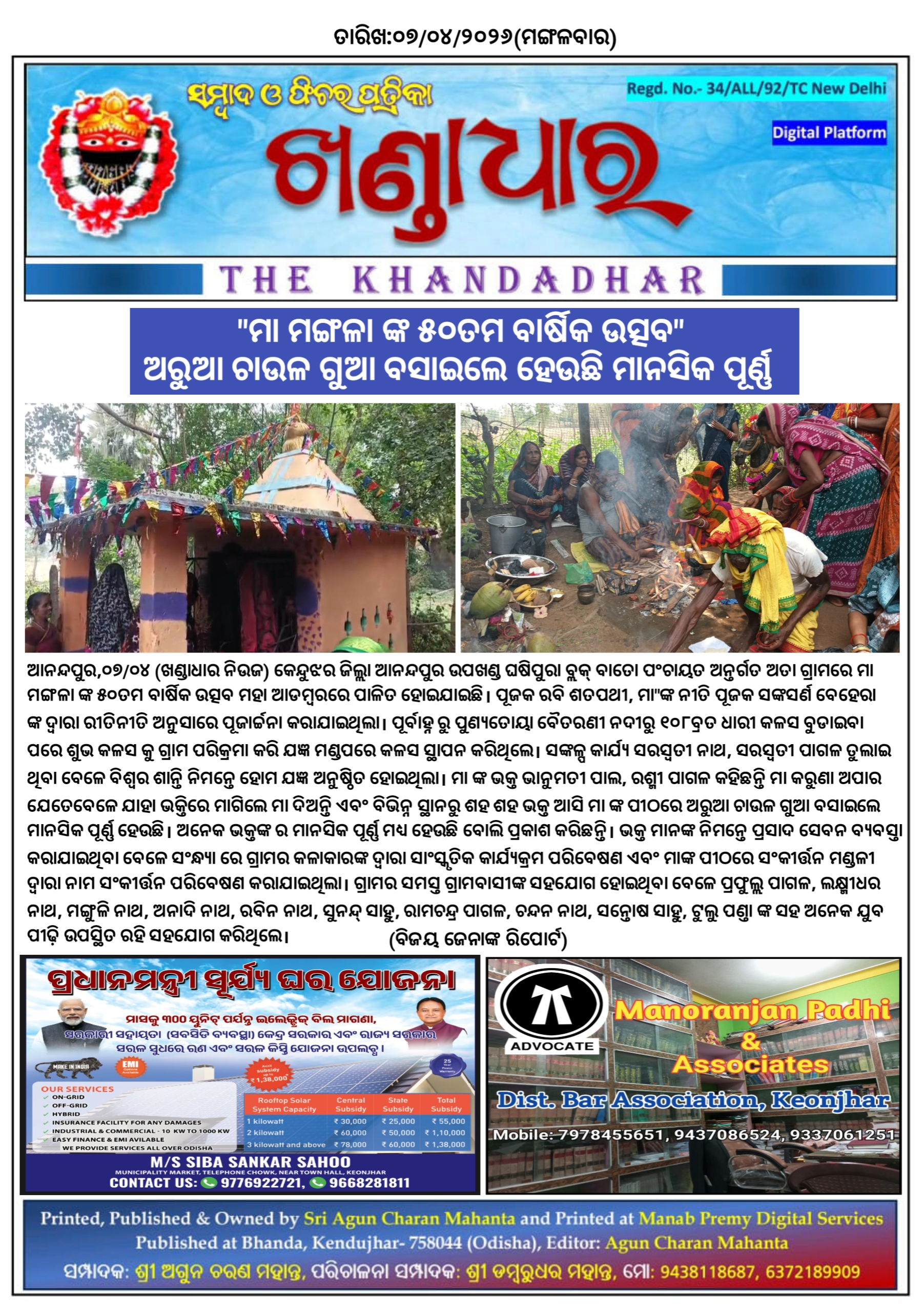 ଖଣ୍ଡାଧାର ନିଉଜ- ବିଜୟ ଜେନାଙ୍କ ରିପୋର୍ଟ।