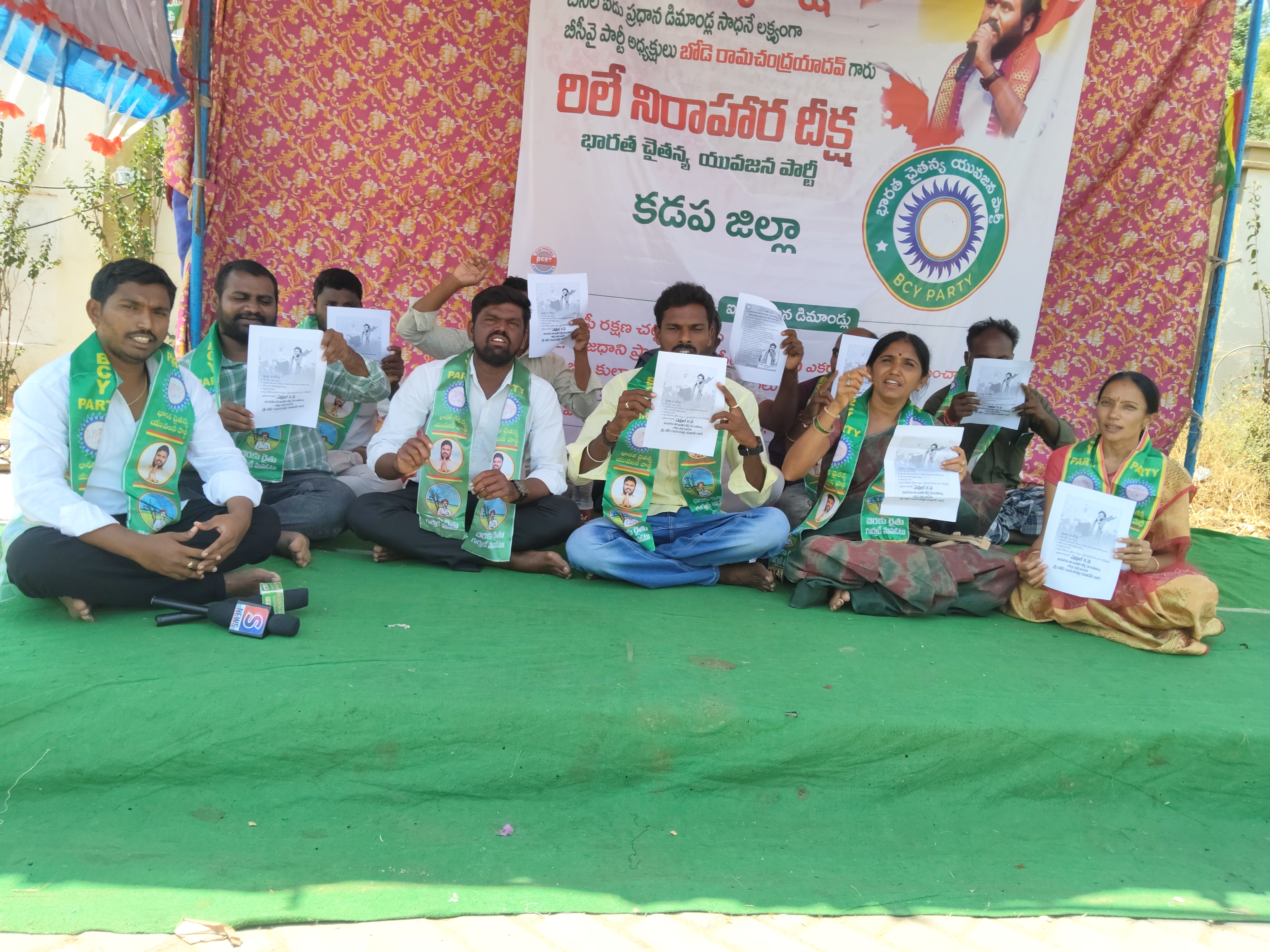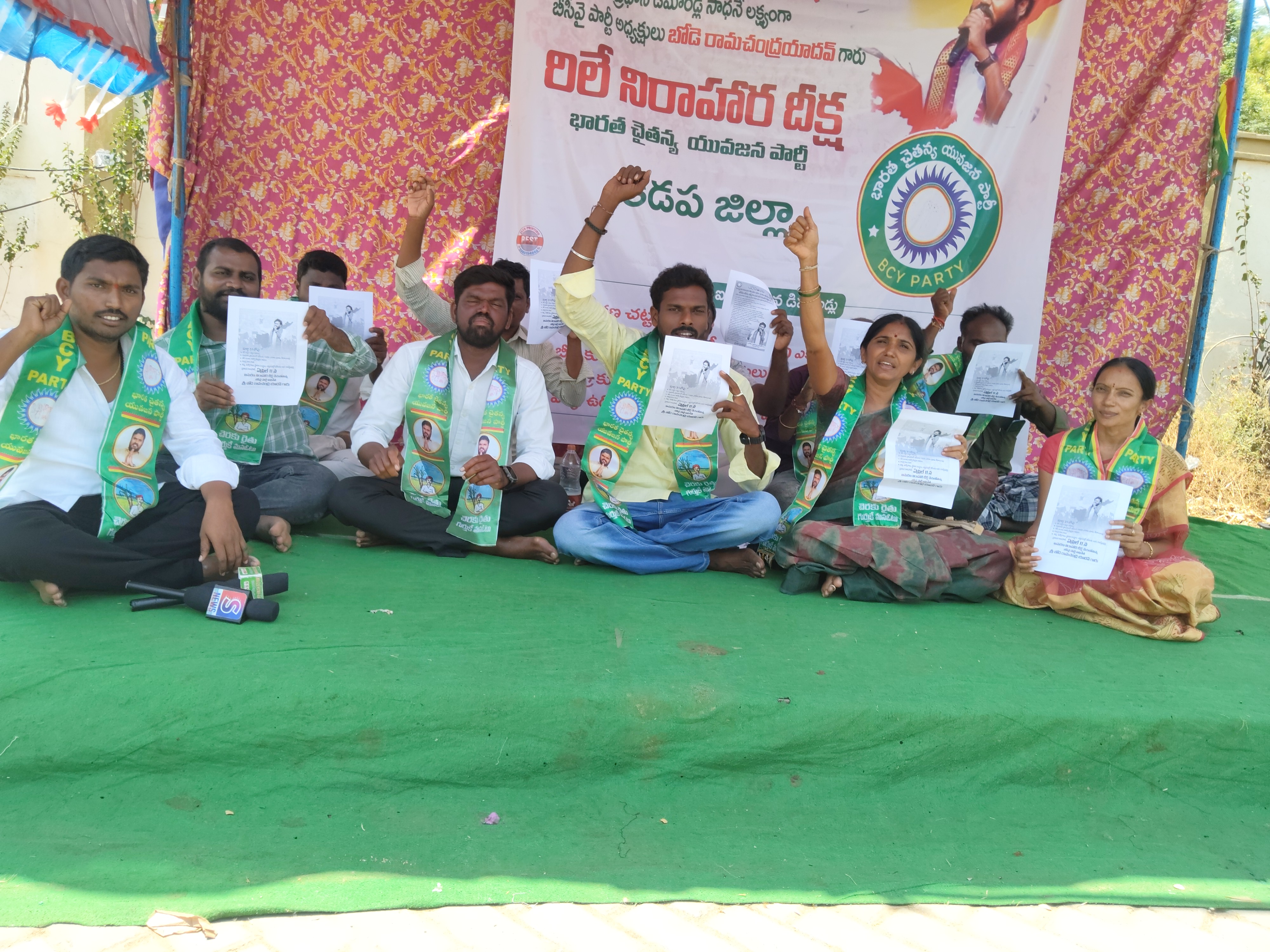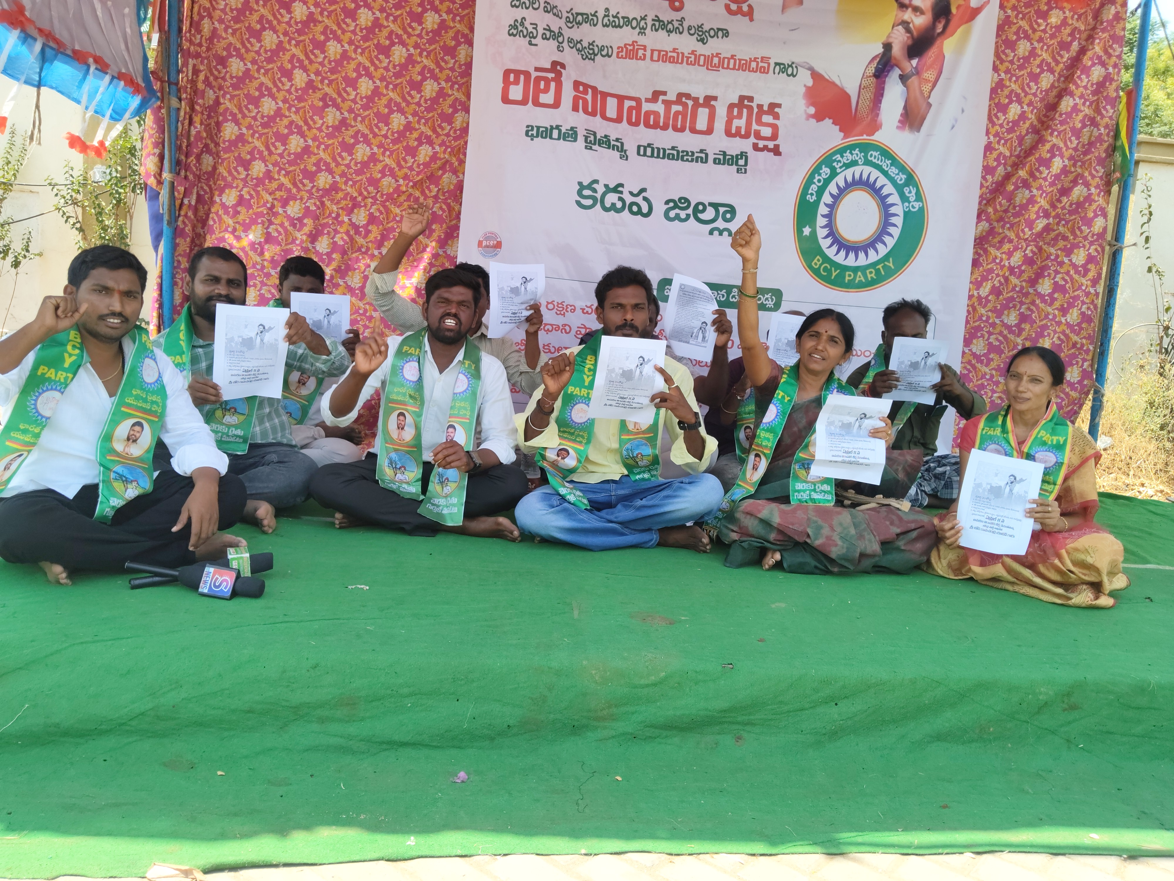 కడప జిల్లా కడప నగరంలోని కలెక్టర్ కార్యాలయం వద్ద బీసీ వర్గాల హక్కుల సాధన కోసం బీసీవై పార్టీ ఆధ్వర్యంలో రిలే నిరాహార దీక్ష కొనసాగుతోంది. ఈ దీక్షకు బీసీవై పార్టీ అధ్యక్షుడు బోడె రామచంద్ర యాదవ్ నాయకత్వం వహిస్తున్నారు.