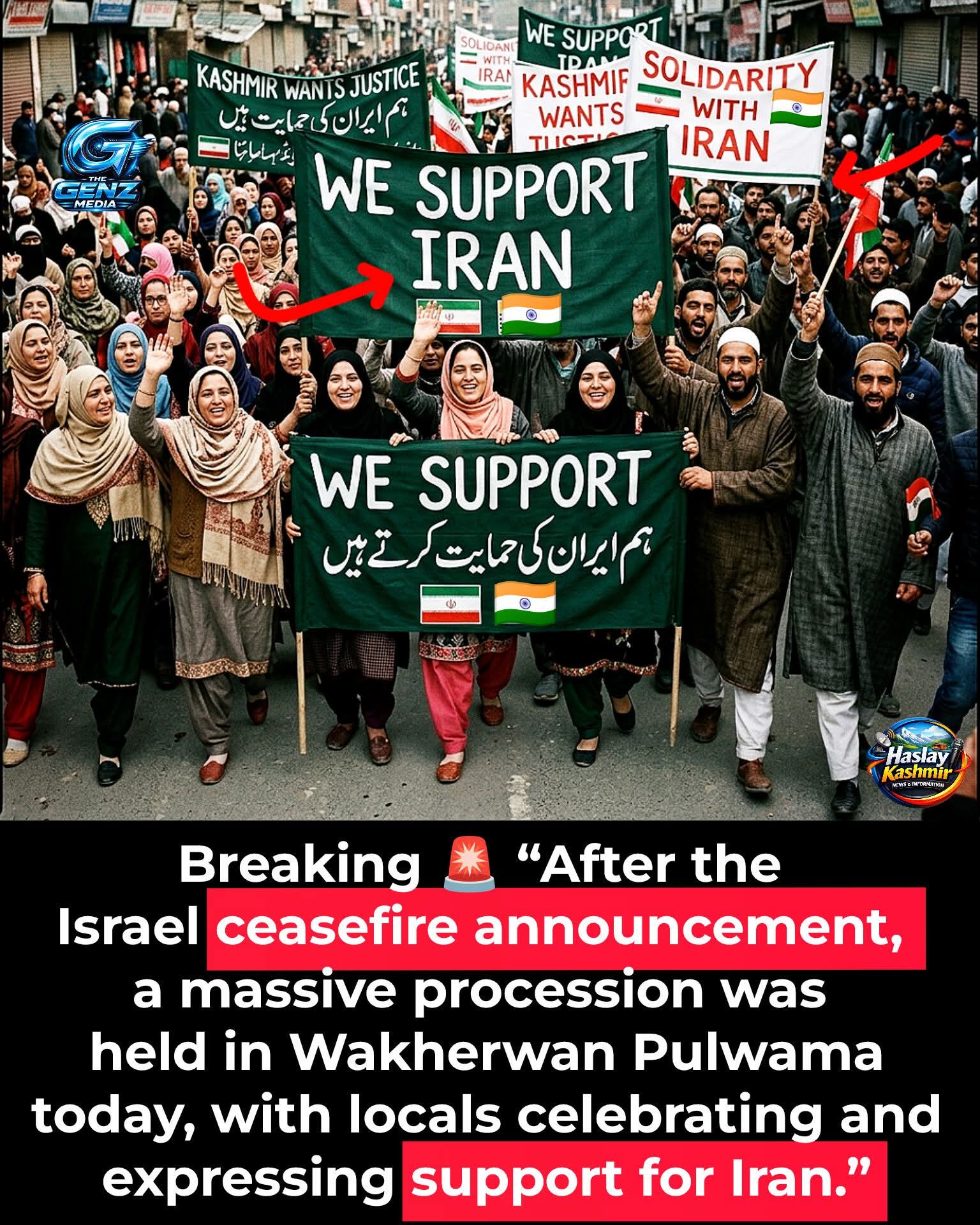 Processions held in Pulwama J &K in support for Ir@n