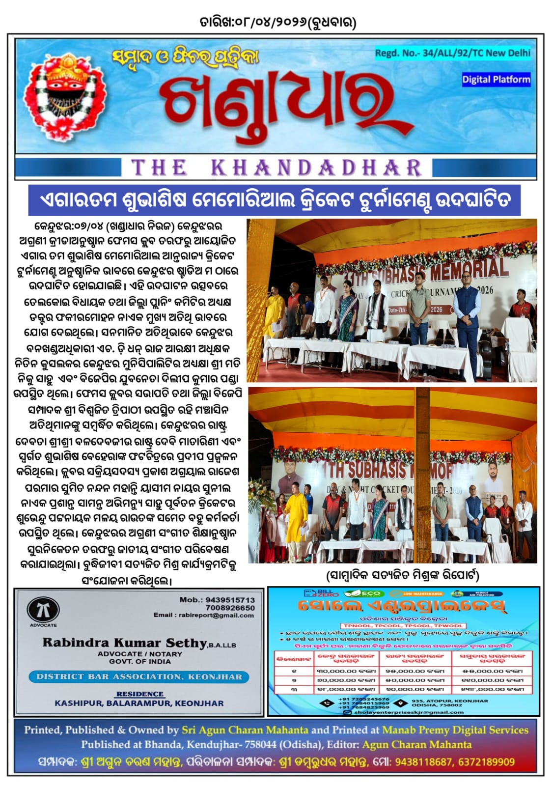 ଖଣ୍ଡାଧାର ନିଉଜ- ସାମ୍ବାଦିକ ସତ୍ୟଜିତ ମିଶ୍ରଙ୍କ ରିପୋର୍ଟ।