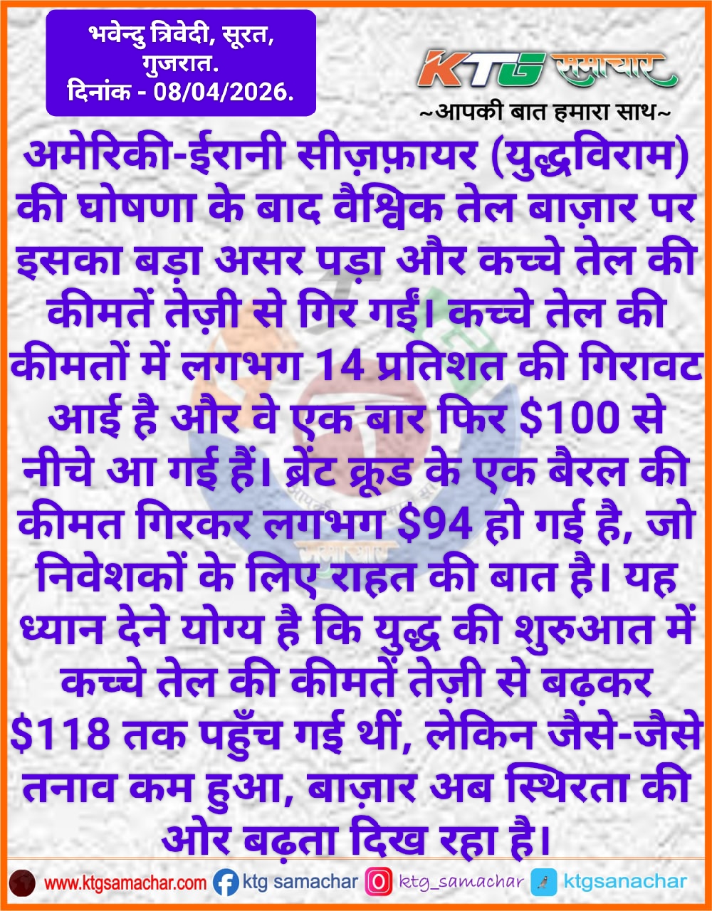 अमेरिका और ईरान के बीच सीज़फायर की घोषणा से वैश्विक तेल बाजार में भारी हलचल हुई है।