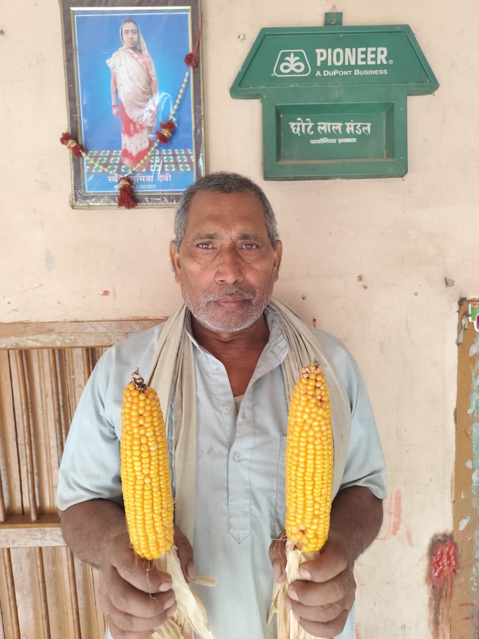 स्थानीय किसान छोटेलाल मंडल जिनके खेत में P33218 मक्का लगा था ने बताया कि यह मक्का किसानों के लिए बहुत ही लाभदायक है क्योंकि जहाँ अन्य मक्का विछले साल इस खेत में दाना बनने के समय सूख गया था वहीं आज मेरे खेत में P33218 मक्का बिल्कुल स्वस्थ होकर कटने के लिए तैयार है। इसके भुट्टे का आकार बड़ा और अधिकतर एक सामान है। बलड़ी इसकी पतली है। पौधा गिरने के प्रति सहनशील है। इन सभी खाशीयत की वजह से P33218 मक्का हम किसानों के लिए वरदान साबित होगा।