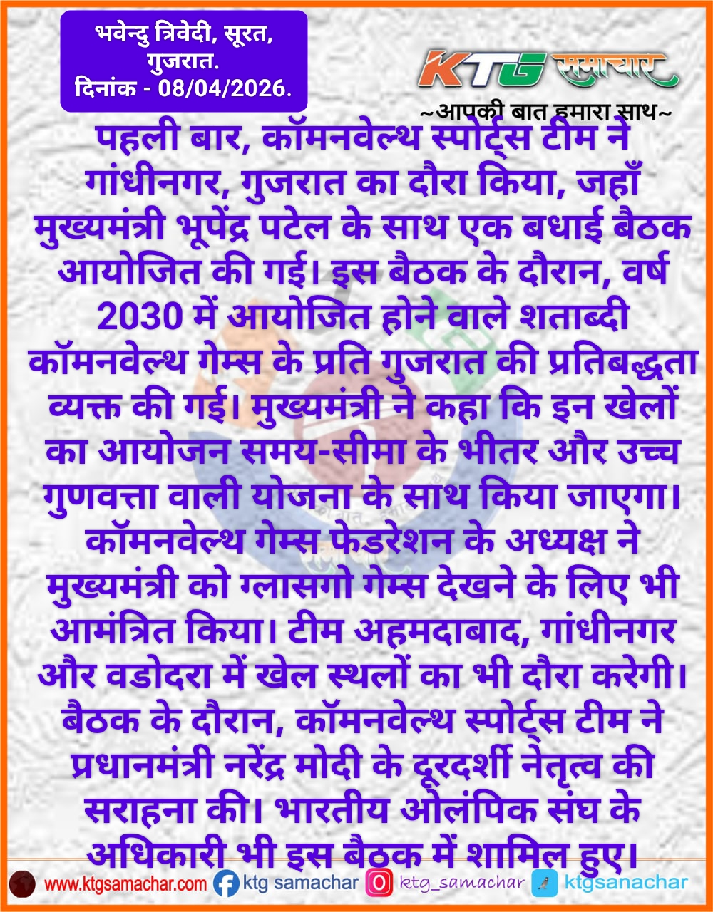 कॉमनवेल्थ स्पोर्ट्स टीम ने गांधीनगर गुजरात का दौरा किया।