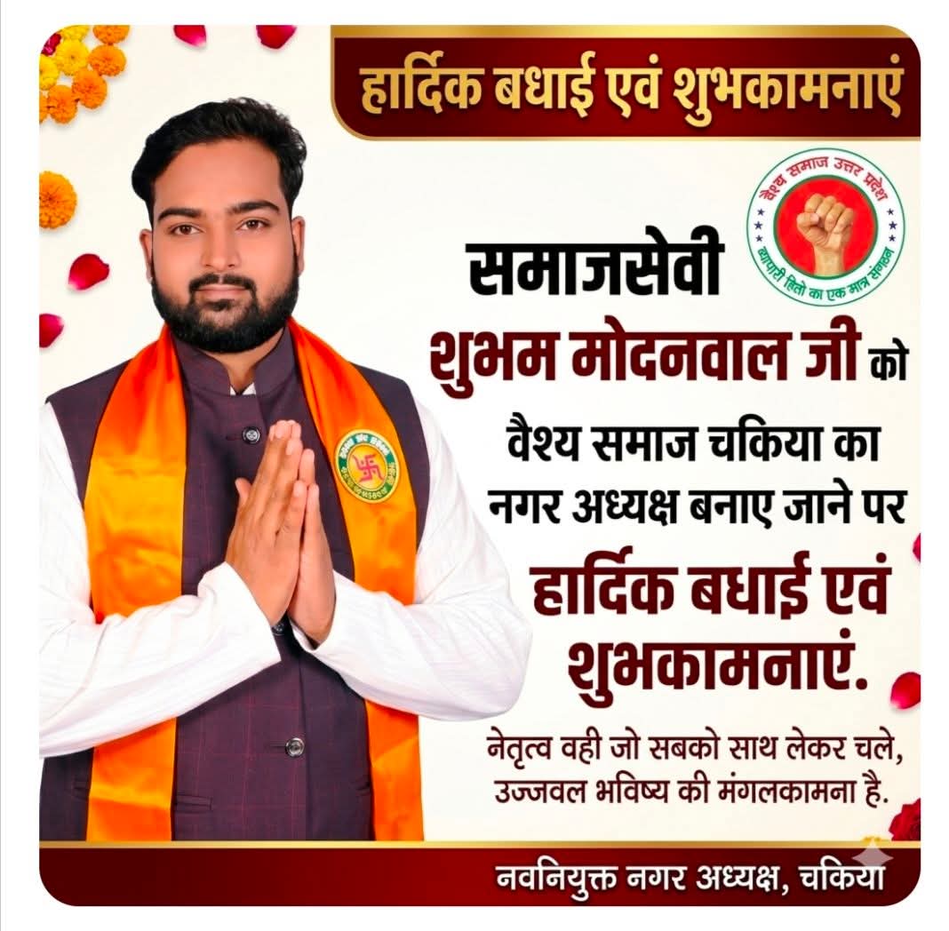 शुभम मोदनवाल जी को इस नई और महत्वपूर्ण जिम्मेदारी के लिए हार्दिक बधाई एवं शुभकामनाएं