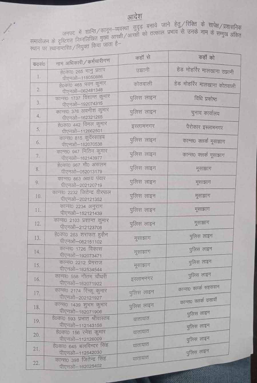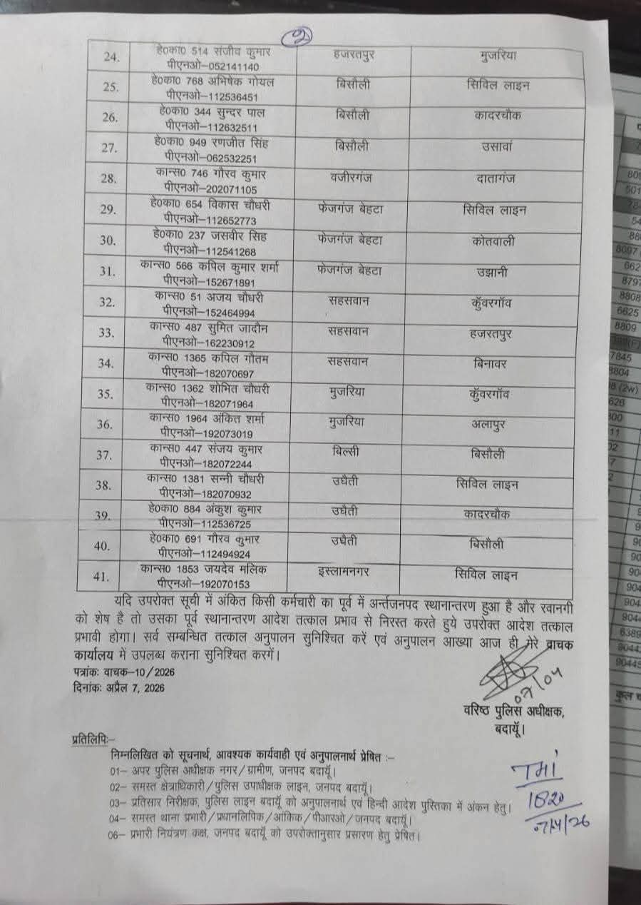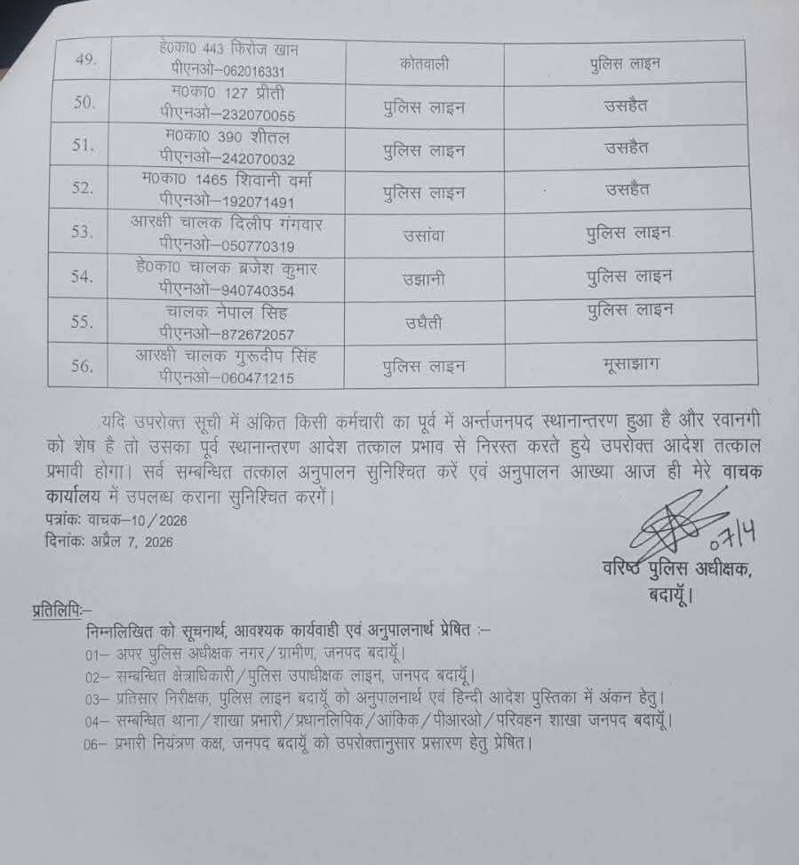 рдмрджрд╛рдпреВрдБ рдкреБрд▓рд┐рд╕ рдореЗрдВ 111 рдкреБрд▓рд┐рд╕рдХрд░реНрдорд┐рдпреЛрдВ рдХрд╛ рдмрдбрд╝рд╛ рдлреЗрд░рдмрджрд▓: рдЕрдВрдХрд┐рддрд╛ рд╢рд░реНрдорд╛ рдХрд╛ рд╕рдЦреНрдд рд╕рдВрджреЗрд╢