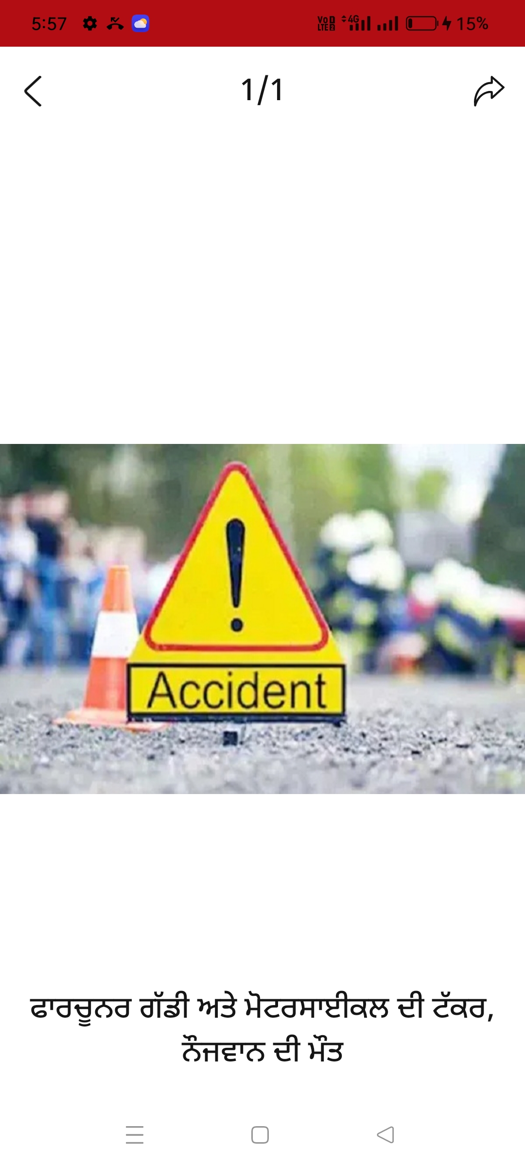 ਇਸ ਦੌਰਾਨ ਜਦੋਂ ਉਹ ਬੱਸ ਅੱਡਾ ਲੱਖੋ ਕੇ ਬਹਿਰਾਮ ਨੇੜੇ ਫਾਰਚੂਨਰ ਗੱਡੀ ਦੇ ਚਲਾਕ ਨੇ ਤੇਜ਼ ਰਫਤਾਰ ਅਤੇ ਲਾਪਰਵਾਹੀ ਨਾਲ ਗੱਡੀ ਚਲਾਉਂਦੇ ਮੋਟਰਸਾਈਕਲ ਨੂੰ ਟੱਕਰ ਮਾਰ ਦਿੱਤੀ ਤੇ ਇਸ ਹਾਦਸੇ ਵਿਚ ਉਸਦਾ ਲੜਕਾ ਕ੍ਰਿਸ਼ ਅਤੇ ਭਾਣਜਾ ਹਰਮਨ ਜ਼ਖਮੀ ਹੋ ਗਏ ਤੇ ਕ੍ਰਿਸ਼ ਦੀ ਅੰਮ੍ਰਿਤਸਰ ਵਿਚ ਇਲਾਜ ਦੌਰਾਨ ਮੌਤ ਹੋ ਗਈ। ਹਾਦਸੇ ਵਿਚ ਉਸਦਾ ਭਾਣਜਾ ਅਜੇ ਵੀ ਬਠਿੰਡਾ ਦੇ ਇਕ ਹਸਪਤਾਲ ਵਿੱਚ ਇਲਾਜ ਅਧੀਨ ਹੈ। ਪੁਲਸ ਵੱਲੋਂ ਮਾਮਲਾ ਦਰਜ ਕਰਕੇ ਅਣਪਛਾਤੇ ਗੱਡੀ ਚਾਲਕ ਦੀ ਭਾਲ ਕੀਤੀ ਜਾ ਰਹੀ ਹੈ।