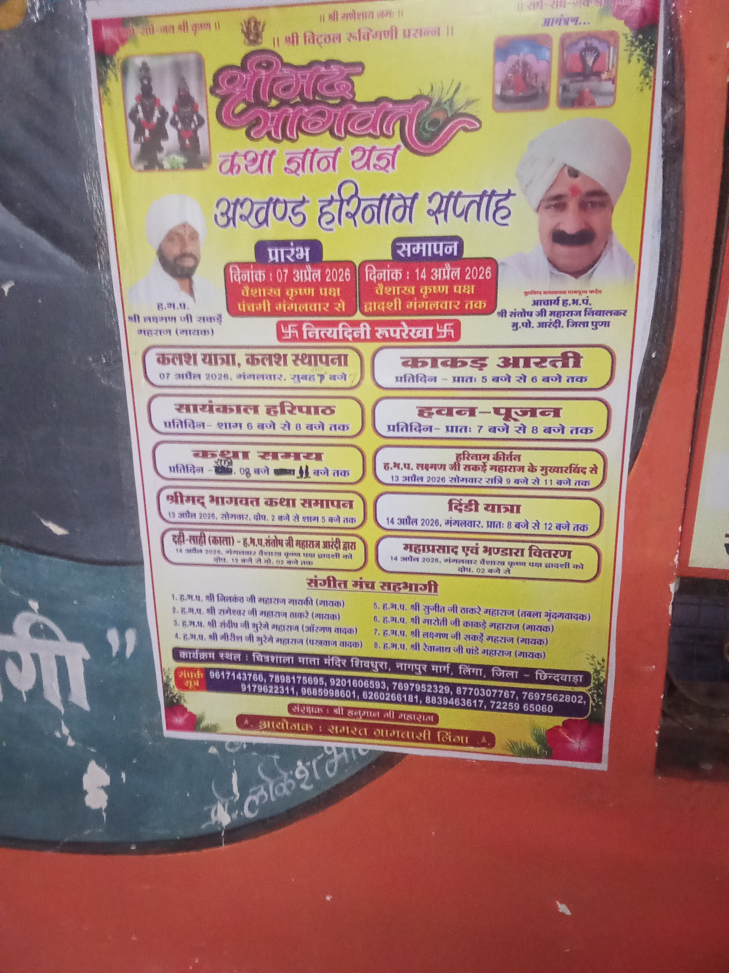 नागपुर रोड ग्राम लिंगा में समस्त ग्रामवासी के जन सहयोग से 7 अप्रैल 2026 से 14 अप्रैल 2026 तक श्रीमद् भागवत कथा का आयोजन एवं अखंड हरी नाम कीर्तन किया जा रहा है जिसमें महाराष्ट्र पुणे से पुजारी श्री संत जी अपने मुख्वानी से कथा वाचक करेंगे ।