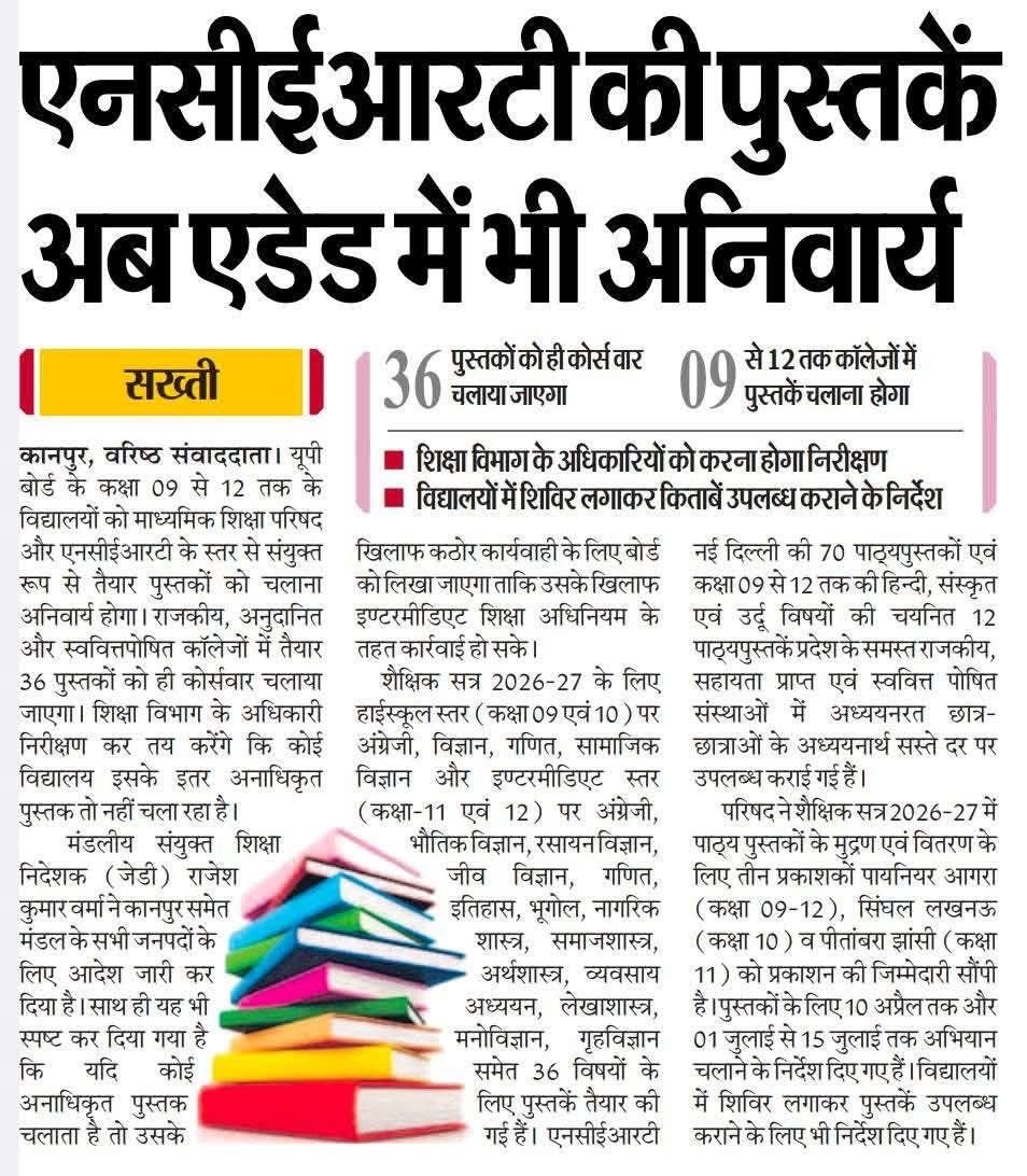 अनाधिकृत पुस्तकों पर बैन: यदि कोई स्कूल अनाधिकृत पुस्तकें चलाता पाया गया, तो उसके खिलाफ इंटरमीडिएट शिक्षा अधिनियम के तहत कठोर कार्रवाई की जाएगी।