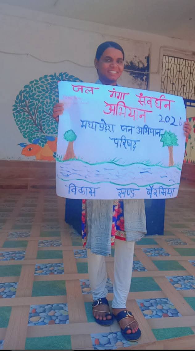 🔷मध्य प्रदेश जन अभियान परिषद द्वारा मुख्यमंत्री सामुदायिक नेतृत्व क्षमता विकास पाठ्यक्रम अन्तर्गत विकासखण्ड बैरसिया के स्वामी विवेकानंद शासकीय महाविद्यालय बैरसिया में संचालित कक्षाओ के छात्रों द्वारा जल गंगा संवर्धन आभियान अन्तर्गत पोस्टर प्रतियोगिता आयोजित की गई