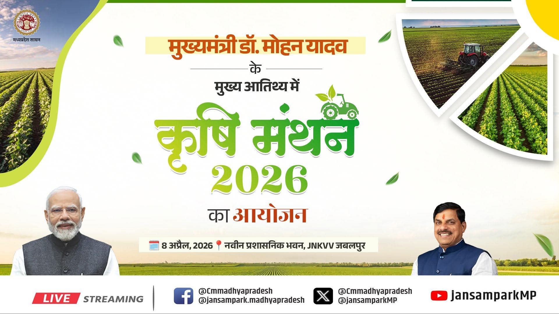 मुख्यमंत्री डॉ. मोहन यादव के मुख्य आतिथ्य में "कृषि मंथन 𝟐𝟎𝟐𝟔" का आयोजन