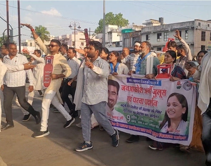 गैस सिलेंडर की अर्थी लेकर भाजपा कार्यालय का घेराव करने पहुंचे एनएसूयआई राष्ट्रीय सचिव देवकी पटेल , पुलिस ने रोककर वॉटर कैनन चलाई