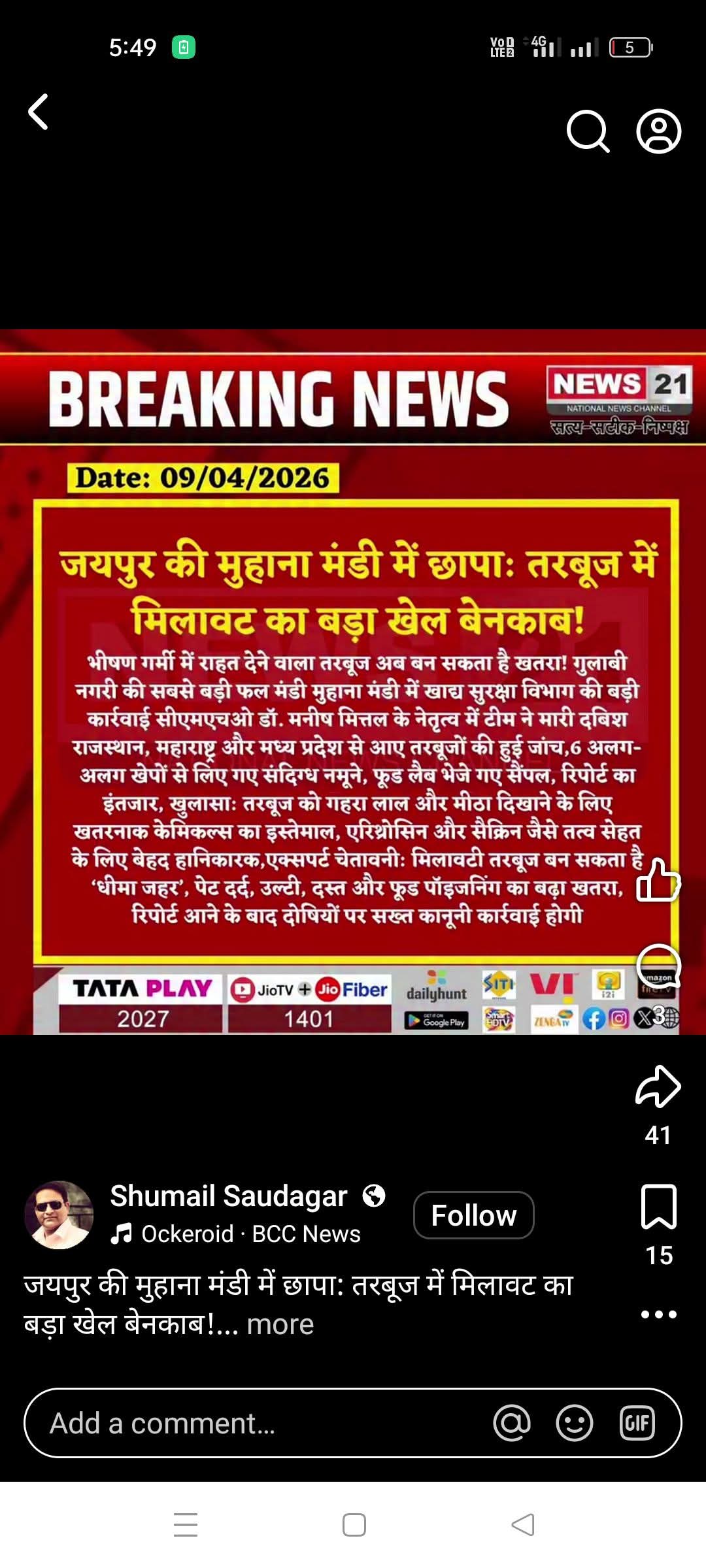 जयपुर की मुहाना मंडी में छापा