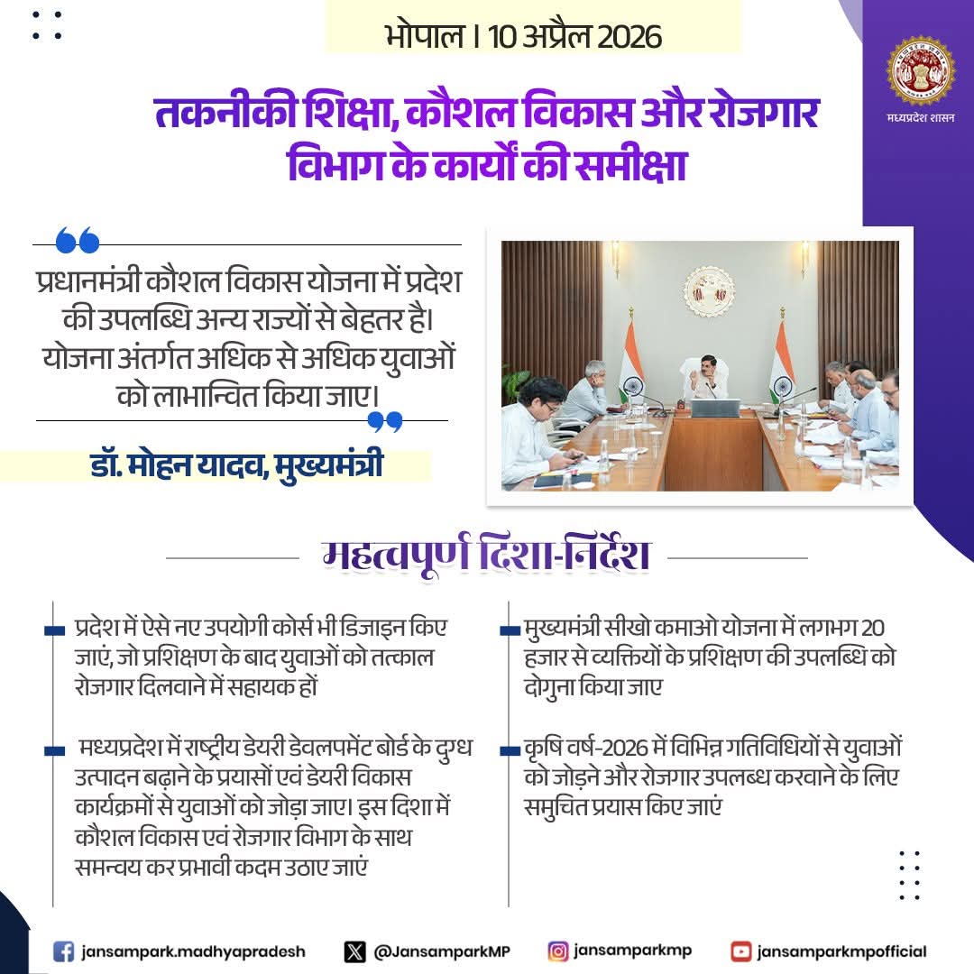 Dr Mohan Yadav CM Madhya Pradesh Department of Skill Development, Madhya Pradesh #MadhyaPradesh #JansamparkMP