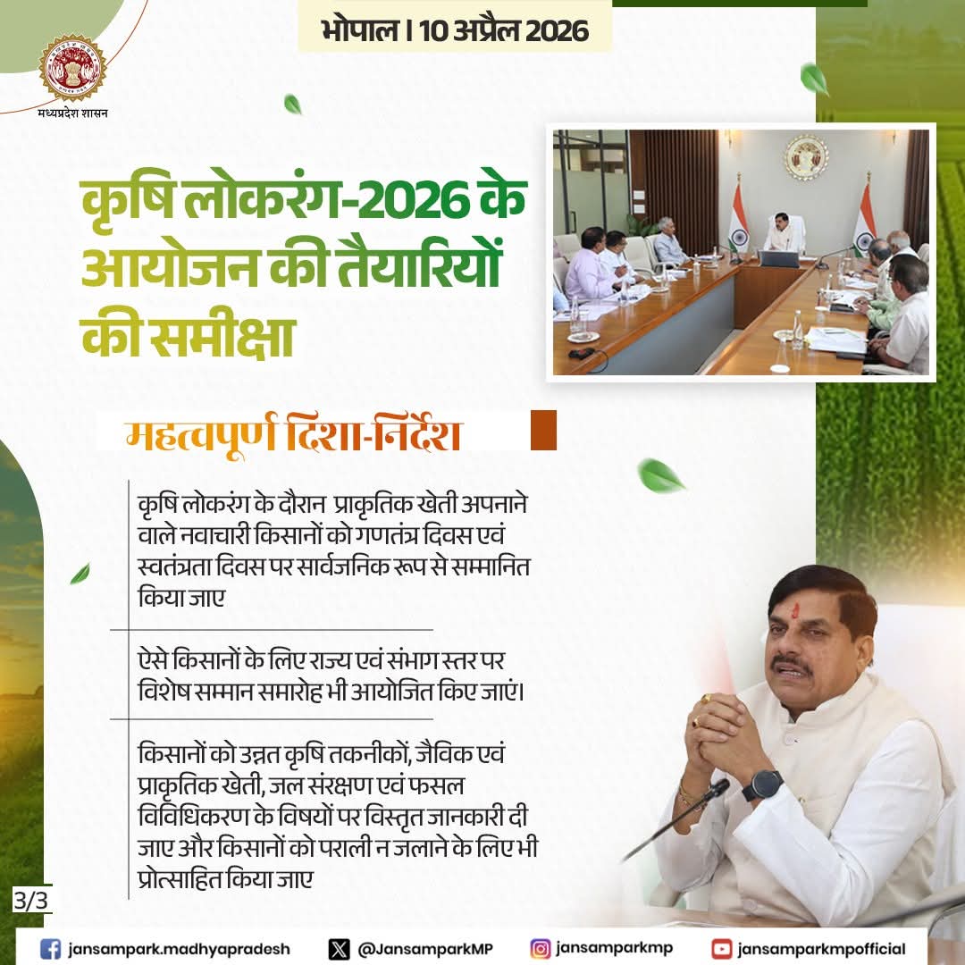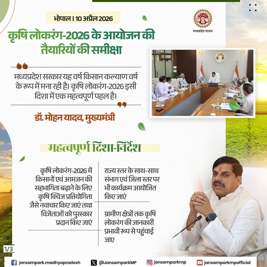 मुख्यमंत्री डॉ. मोहन यादव द्वारा कृषि लोकरंग-2026 के आयोजन की तैयारियों की समीक्षा