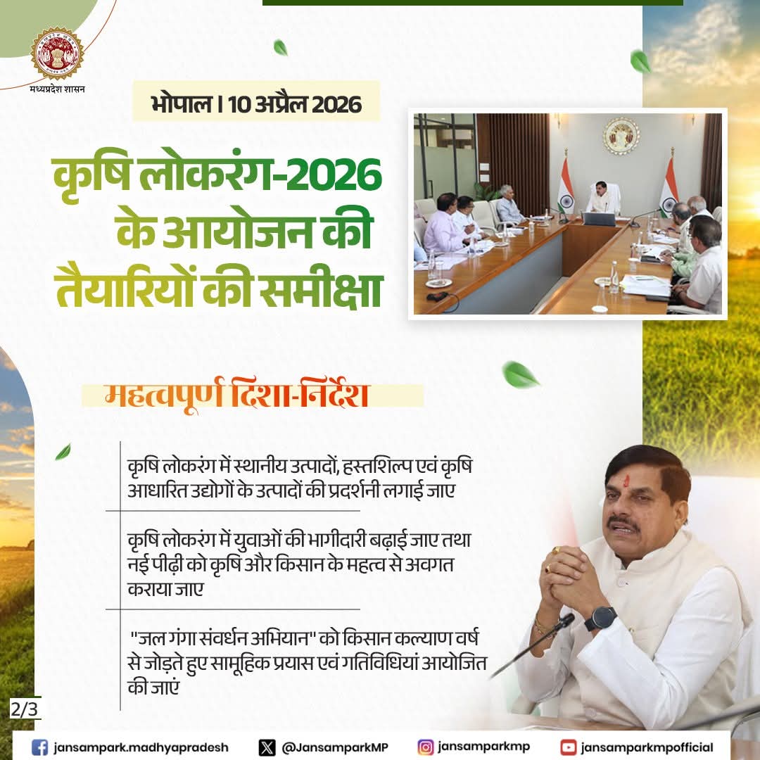 मुख्यमंत्री डॉ मोहन यादव द्वारा कृषि लोकरंग -2026 के आयोजन की तैयारियों की समीक्षा
