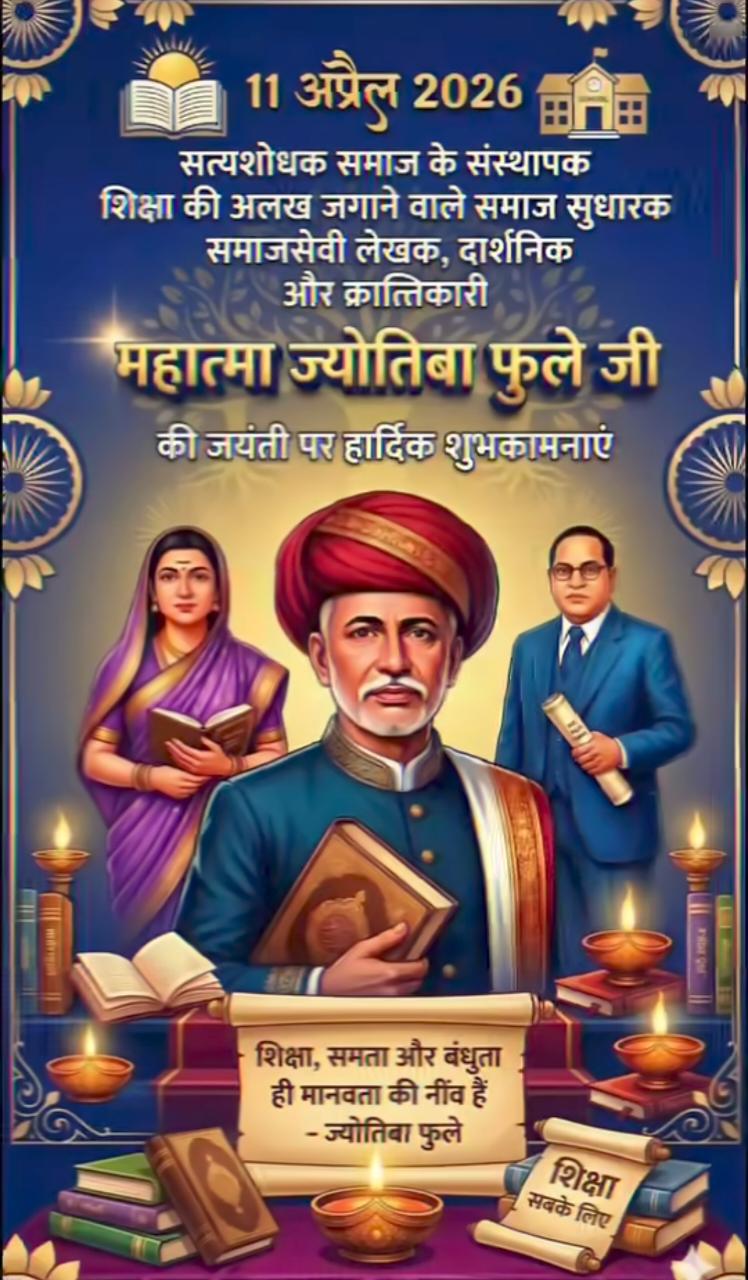 ​"महात्मा फुले ने कहा था कि 'विद्या बिना मति गई, मति बिना नीति गई', यानी शिक्षा के बिना मनुष्य का विकास संभव नहीं है। आज उनकी जयंती पर हम सभी को यह संकल्प लेना चाहिए कि हम उनके बताए समानता और शिक्षा के मार्ग पर चलें।