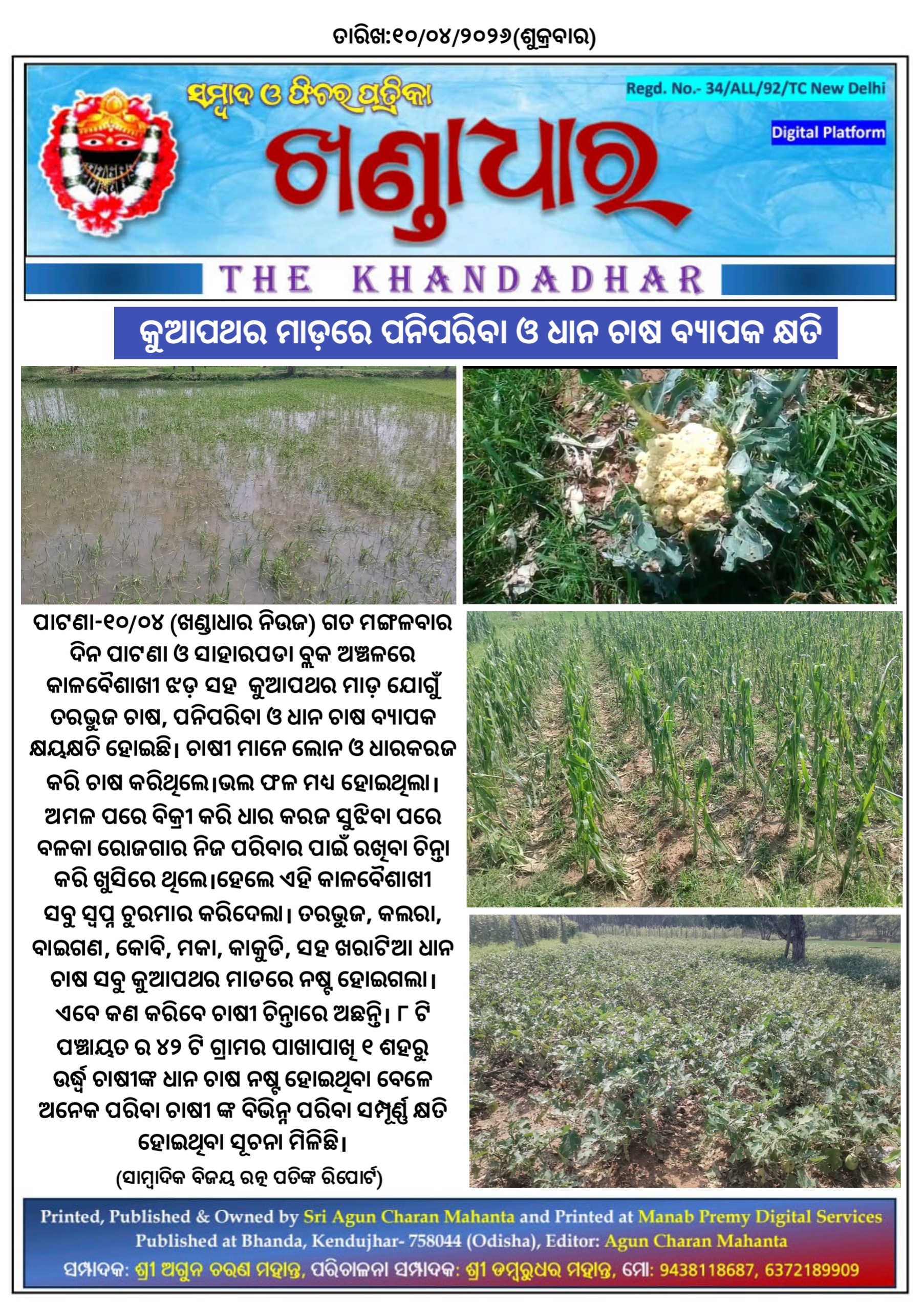 ଖଣ୍ଡାଧାର ନିଉଜ- ସାମ୍ବାଦିକ ବିଜୟ ରତ୍ନ ପତିଙ୍କ ରିପୋର୍ଟ।