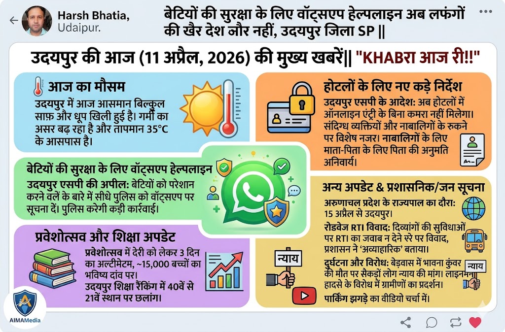 उदयपुर की आज (11 अप्रैल, 2026) की मुख्य खबरें||