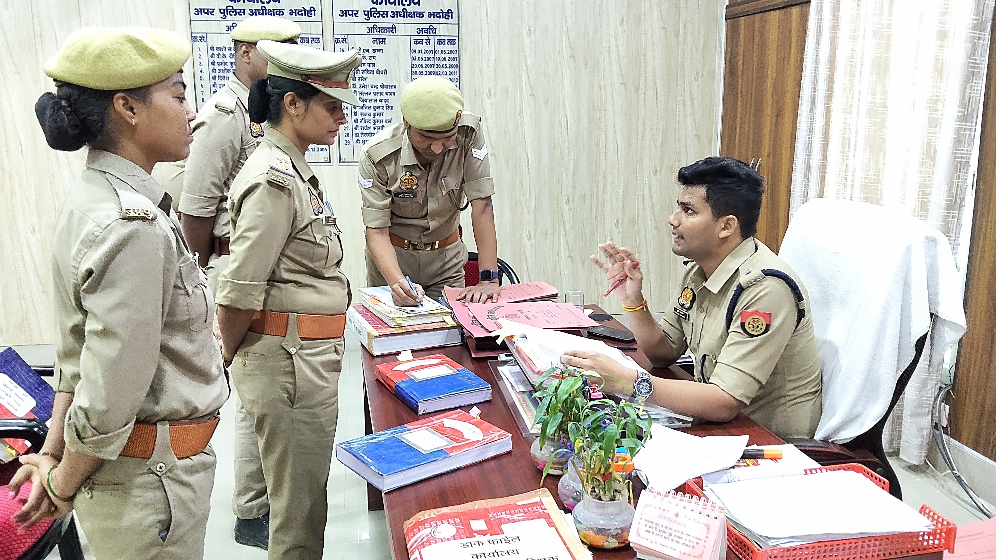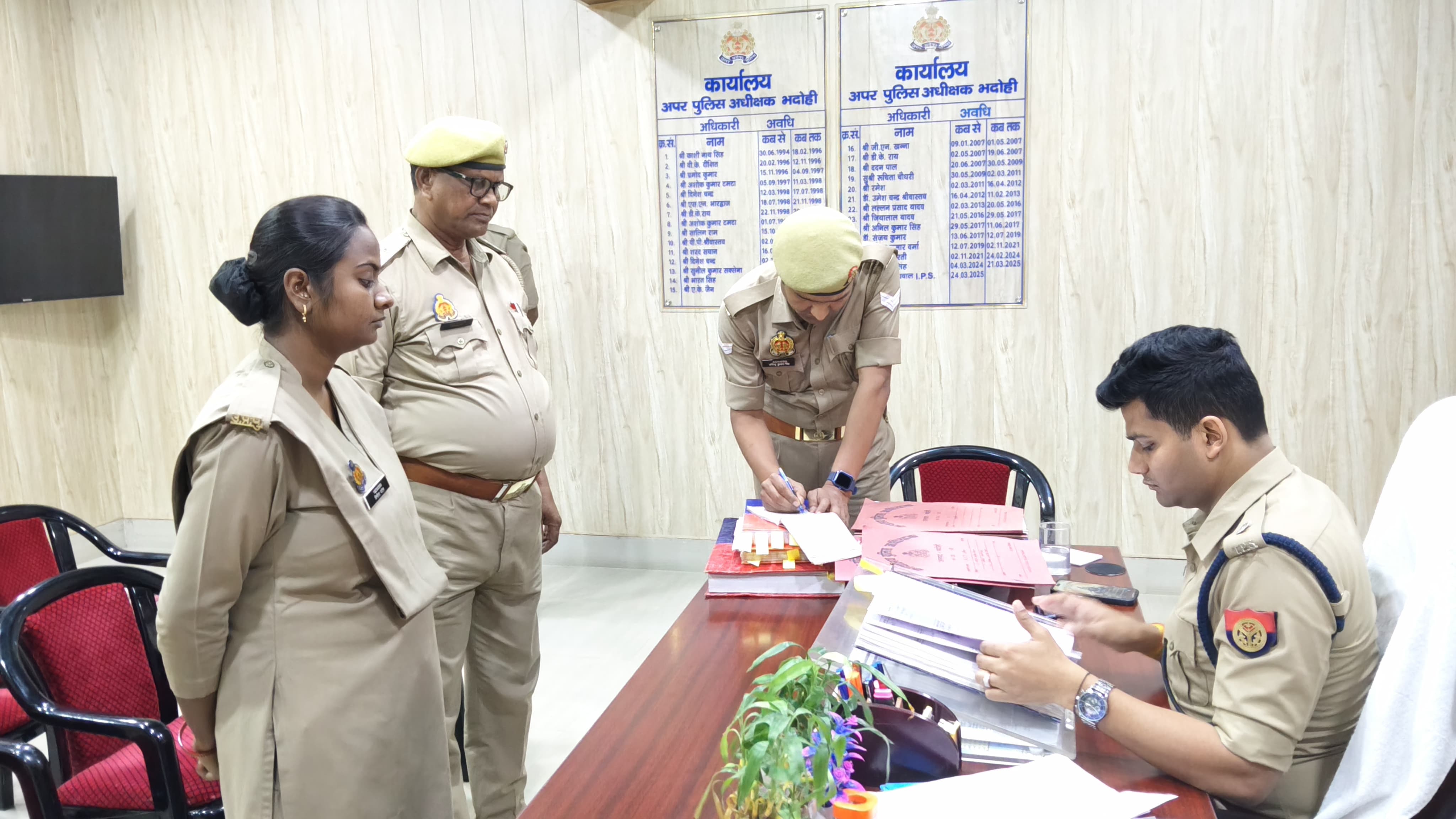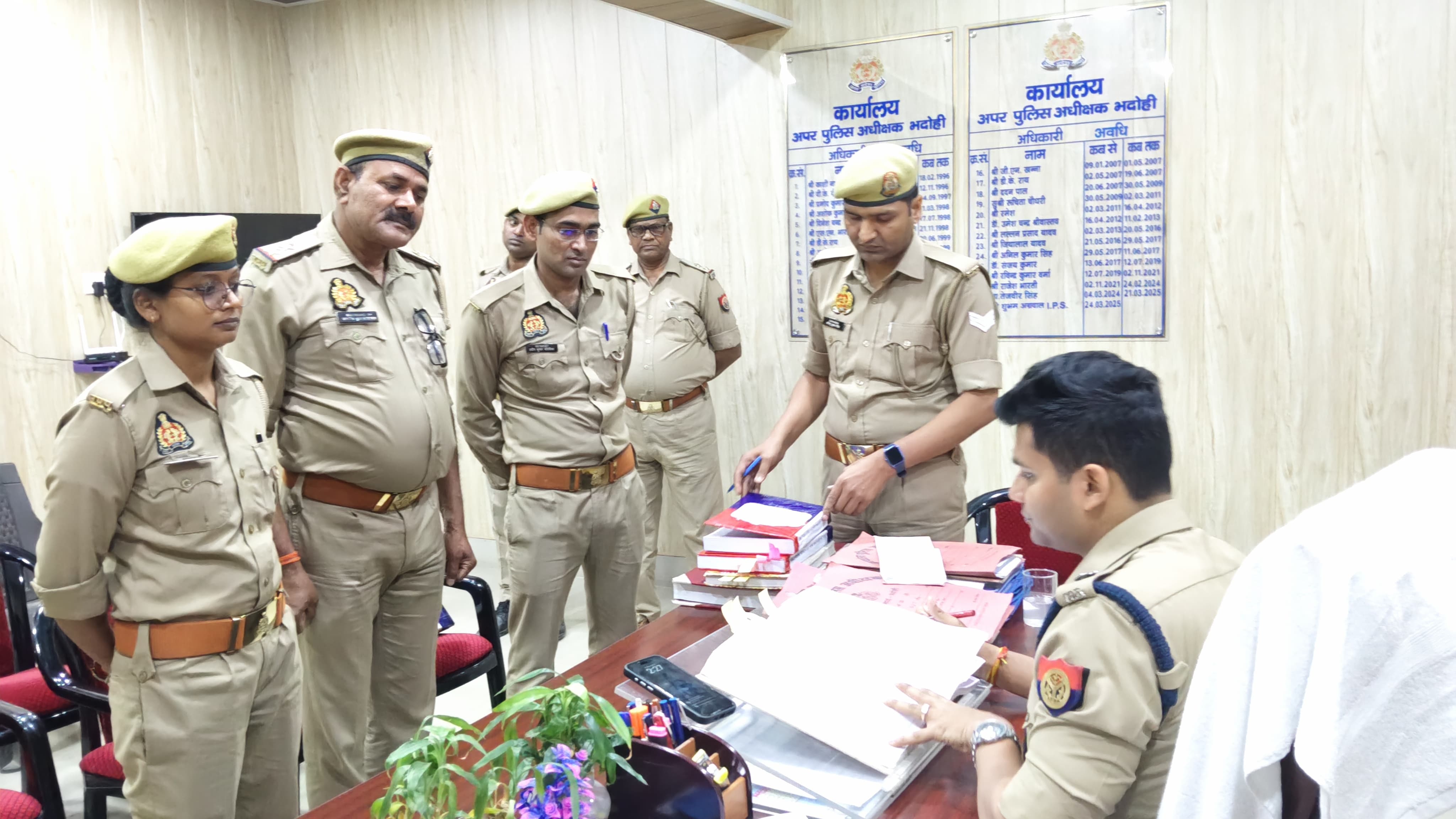 भदोही जनपद में आज दिनांक 10.04.2026 को शुभम अग्रवाल अपर पुलिस अधीक्षक भदोही द्वारा पुलिस कार्यालय सरपतहां में थाना भदोही, थाना सुरियावां और थाना दुर्गागंज के महत्वपूर्ण अभिलेखों का अवलोकन किया गया। इस दौरान संबंधित थानों के अपराध रजिस्टर, महिला हेल्प डेस्क रजिस्टर, जनसुनवाई और समाधान रजिस्टर का अवलोकन कर समीक्षा करते हुए कार्यप्रणाली पर सीधा फीडबैक लिया गया। अपर पुलिस अधीक्षक महोदय द्वारा निर्देशित किया गया कि महिला हेल्प डेस्क और जनसुनवाई के माध्यम से प्राप्त शिकायतों का समयबद्ध, पारदर्शी और प्रभावी निस्तारण सुनिश्चित किया जाए। उन्होंने अभिलेखों के बेहतर रखरखाव और पुलिसिंग को अधिक जनोन्मुखी बनाने पर बल देते हुए स्पष्ट किया कि आम जनमानस की समस्याओं का त्वरित समाधान पुलिस की सर्वोच्च प्राथमिकता है।