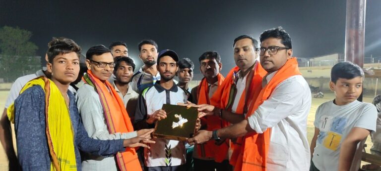 मैच के मुख्य अतिथि के रूप में उपस्थित समाजसेवी मुन्ना प्रसाद ने विजेता एवं उपविजेता टीम के खिलाड़ियों को पुरस्कार प्रदान कर उनका उत्साहवर्धन किया।इस मौके पर उन्होंने अपने संबोधन में कहा कि “खेल से अनुशासन, एकता और भाईचारे की भावना विकसित होती है। इस तरह के टूर्नामेंट ग्रामीण क्षेत्रों के युवाओं को अपनी प्रतिभा निखारने का बेहतर अवसर प्रदान करते हैं।युवा खेल के साथ-साथ शिक्षा पर भी ध्यान दें, तभी वे अपने भविष्य को उज्ज्वल बना सकते हैं।”इस अवसर पर टूर्नामेंट के अध्यक्ष विशाल कुमार सिंह, मीडिया प्रभारी अभिषेक रानू सहित वरिष्ठ पत्रकार प्रकाश सत्यप्रकाश रवानी, दिनेश प्रसाद गुप्ता ,जितेंद्र गुप्ता सहित कई गणमान्य लोग मौजूद रहे.आयोजन को लेकर क्षेत्र में उत्साह का माहौल बना हुआ है और स्थानीय खिलाड़ियों को अपनी प्रतिभा दिखाने का बेहतर मंच मिल रहा है।