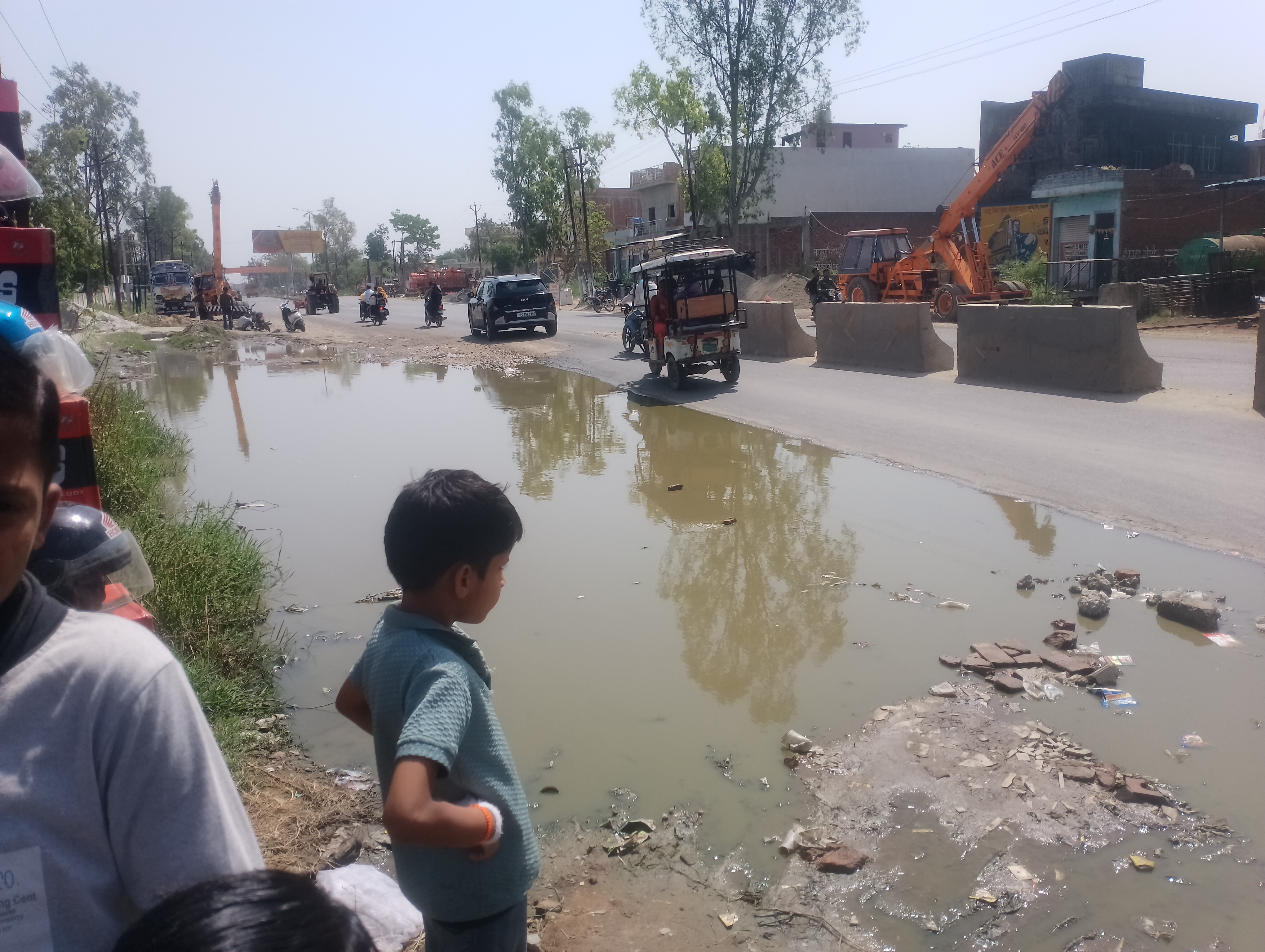 Ujhani badaun bypass ujhani me is jagha jal bharao ki samasya pr gahan manthan krte log