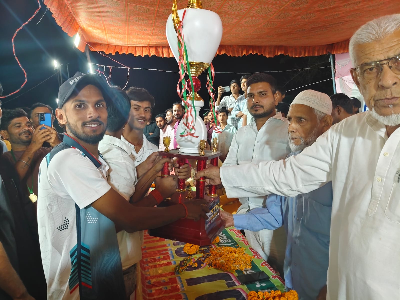 मैच के समापन पर मुख्य अतिथि अश्विनी कुमार सिंह ने विजेता टीम को पुरस्कार देकर सम्मानित किया, जबकि उपविजेता टीम को शेर अली द्वारा पुरस्कार प्रदान किया गया। इस दौरान अतिथियों ने खिलाड़ियों का उत्साहवर्धन करते हुए कहा कि ऐसे खेल आयोजन क्षेत्र में प्रतिभाओं को निखारने के साथ-साथ सामाजिक एकता और भाईचारे को भी मजबूत करते हैं।