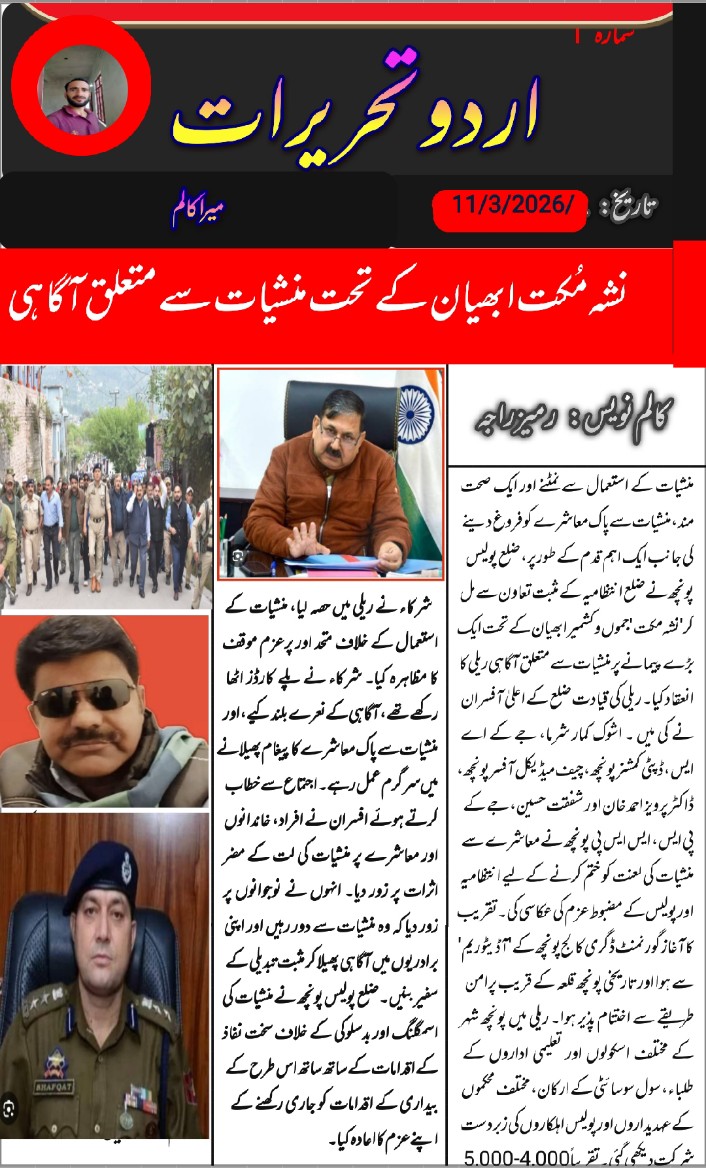 نشہ مُفت جموں و کشمیر ابھیان کے تحت اگاہی پروگرام کا انعقاد