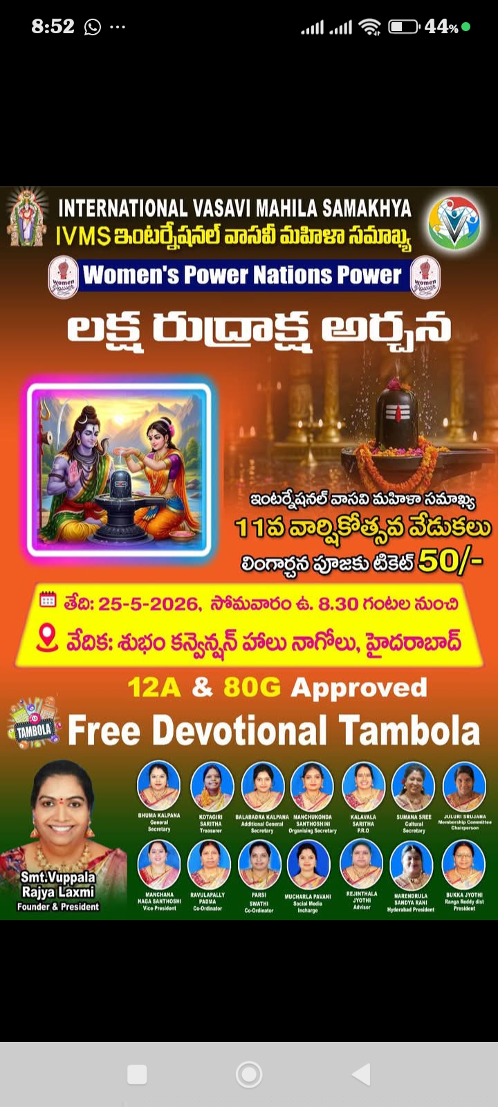 ఆధ్వర్యంలో లక్షరుద్రాక్ష అర్చన మరియు ఫ్రీ తంబోలా రిజిస్ట్రేషన్