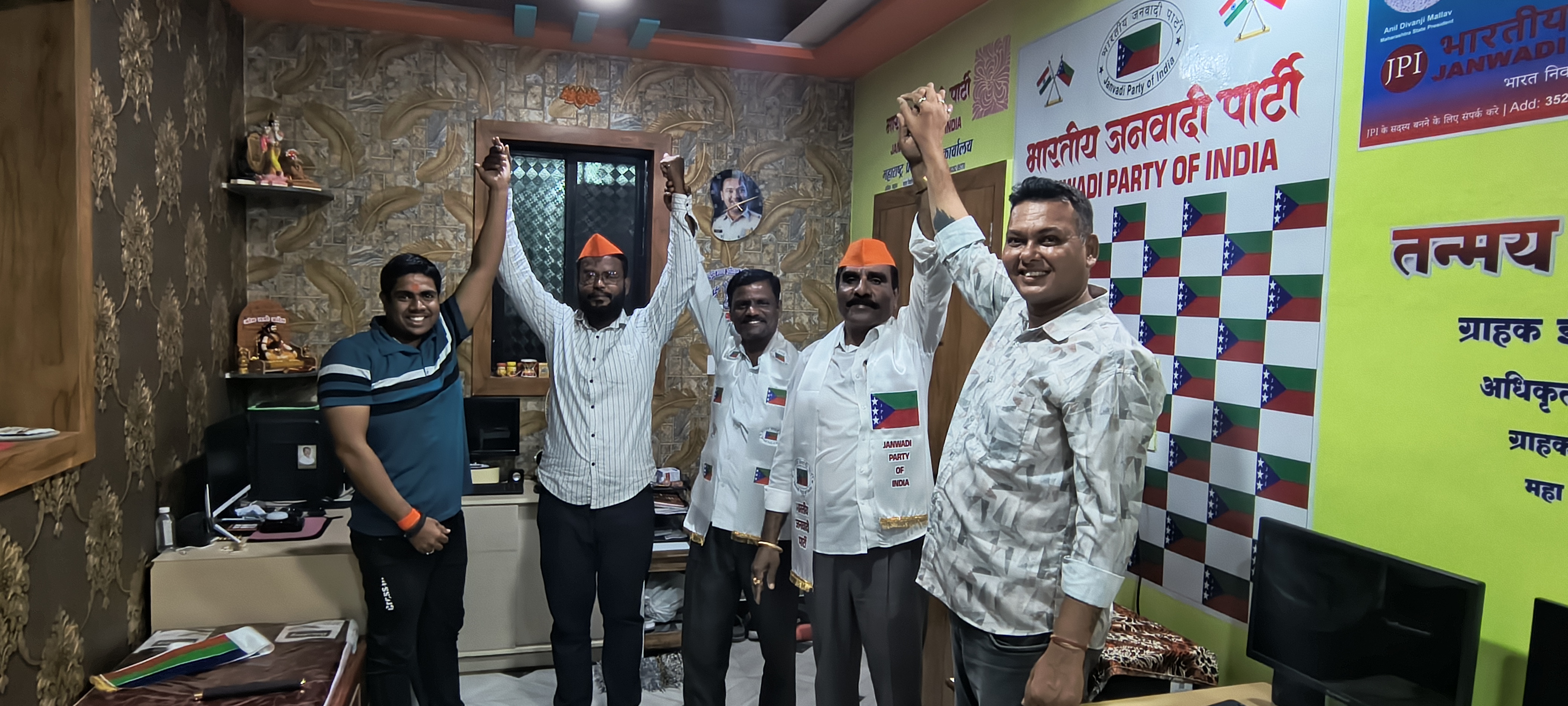 भारतीय जनवादी पार्टी महाराष्ट्र प्रदेशाध्यक्ष कार्यालयात श्री अनिल मल्लाव यांचे आदेशाने आज संयुक्त बैठक घेण्यात आली.या बैठकीमध्ये भारतीय जनवादी पार्टी महाराष्ट्र प्रदेश जनरल सेक्रेटरी या पदासाठी मीटिंग भरवण्यात आली. मीटिंगमध्ये महाराष्ट्र जनरल सेक्रेटरी या पदावर माजी सैनिक श्री.मनाजी भगवंत बोऱ्हाडे यांची निवड करण्यात आली. माजी सैनिक श्री. मनाजी भगवंत बोऱ्हाडे यांच्या निवडीमुळे शिरूर तालुक्यातील सोने सांगवी गावातील त्यांच्या कार्यकर्त्यांमध्ये जल्लोषाचे, आनंदाचे वातावरण निर्माण झाले.माजी सैनिक श्री.मनाजी भगवंत बोऱ्हाडे यांचे मूळ गाव शिरूर तालुक्यातील सोने सांगवी येथील आहे. ग्रामपंचायत सोने सांगवी येथे माजी ग्रामपंचायत सदस्य म्हणून कार्यकाल काढला आहे.श्री.मनाजी भगवंत बोऱ्हाडे यांची भारतीय जनवादी पार्टी महाराष्ट्र प्रदेश जनरल सेक्रेटरी पदी निवड करण्यात आली. या निवड प्रक्रियेमध्ये भारतीय जनवादी पार्टीचे महाराष्ट्र प्रदेश उपाध्यक्ष श्री. प्रवीण घेमूड व भारतीय जनवादी पार्टी महाराष्ट्र प्रदेश संघटन सचिव श्री योगेश डोळस, भारतीय जनवादी पार्टी महाराष्ट्र प्रदेश कार्यकारिणी समिती श्री.बबन कनिच्छे व पुणे जिल्हाध्यक्ष श्री लक्ष्मण मल्लाव व भारतीय जनवादी पार्टी , तालुका कोषाध्यक्ष श्री. रोहित राजू मल्लाव, व कार्याध्यक्ष श्री. करण मल्लाव शिरूर तालुका सरचिटणीस श्री माधव सल्ले यांच्या उपस्थितीत त्यांची निवड करण्यात आली. महाराष्ट्र प्रदेश अध्यक्ष यांच्या भाषणामध्ये भारतीय जनवादी पार्टी एक राष्ट्रीय पक्ष पार्टी आहे. तसेच लोकशाही प्रक्रिया मजबूत करण्यासाठी संविधानिक हक्काचे रक्षण करण्यासाठी आणि सर्वांना न्याय समता आणि प्रतिष्ठा उपलब्ध असेल असा समाज निर्माण करण्यासाठी पक्ष वचनबद्ध आहे. तळागाळातील सहभाग सर्वांचा सहभाग आणि पारदर्शक राजकीय नेतृत्वाद्वारे पक्षाची उद्दिष्ट प्रशासन सामाजिक कल्याण शिक्षण आणि राजकीय विकासात अर्थपूर्ण बदल घडून आणण्याचे आहेत.यांनी सर्वांचे आभार मानले.श्री.मनाजी भगवंत बोऱ्हाडे यांनी आपल्या भाषणामध्ये सांगितले की पक्ष वाढविण्याचे कार्य करील.JPI भवनांमध्ये संविधानाची शपथ देण्यात आली. श्री.मनाची भगवंत बोऱ्हाडे यांचे पुढील राजकीय वाटचालीस हार्दिक शुभेच्छा 💐💐💐💐💐💐💐