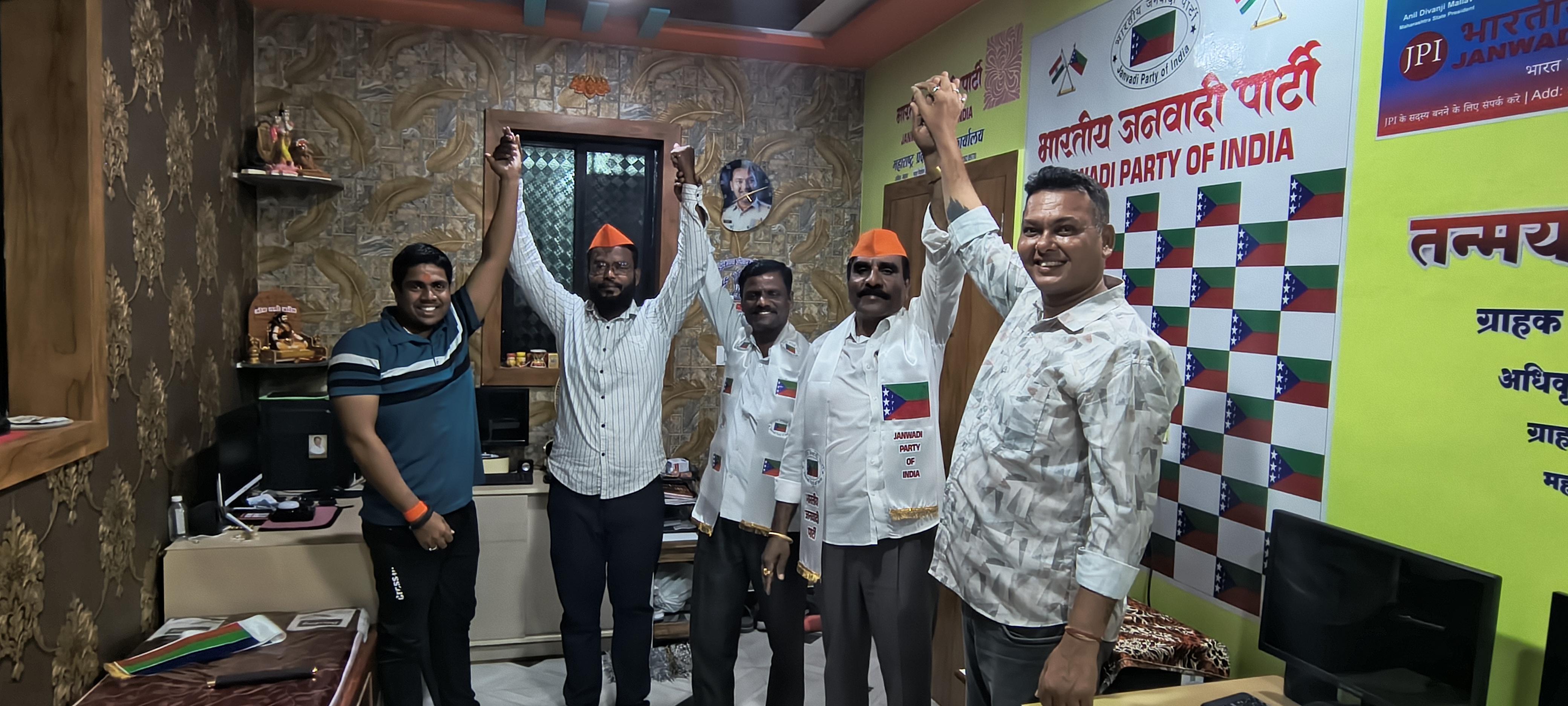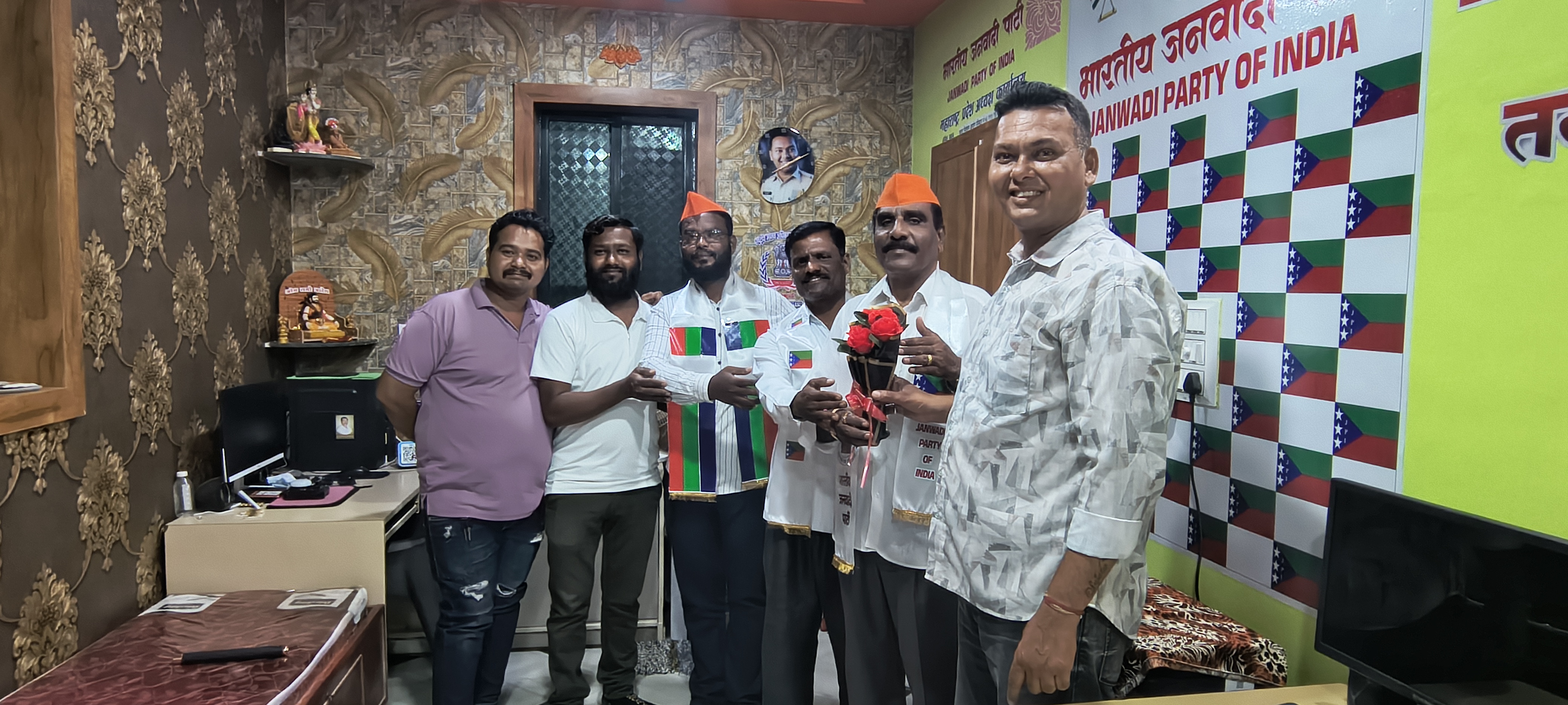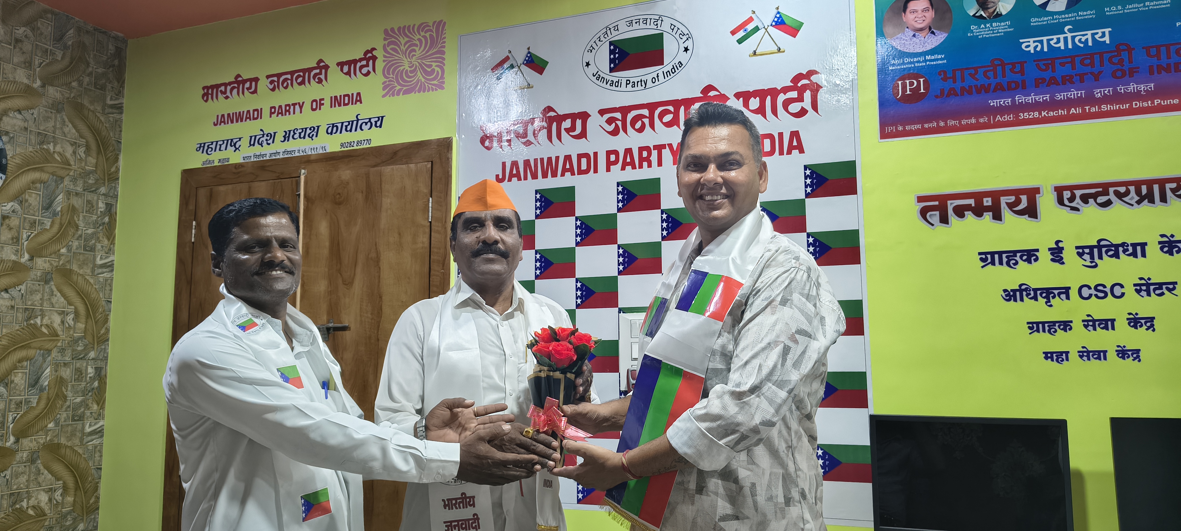 भारतीय जनवादी पार्टी महाराष्ट्र प्रदेशाध्यक्ष कार्यालयात श्री अनिल मल्लाव यांचे आदेशाने आज संयुक्त बैठक घेण्यात आली.या बैठकीमध्ये भारतीय जनवादी पार्टी महाराष्ट्र प्रदेश जनरल सेक्रेटरी या पदासाठी मीटिंग भरवण्यात आली. मीटिंगमध्ये महाराष्ट्र जनरल सेक्रेटरी या पदावर माजी सैनिक श्री. मनाजी भगवंत बोऱ्हाडे यांची निवड करण्यात आली. माजी सैनिक श्री.मनाजी भगवंत बोऱ्हाडे यांच्या निवडीमुळे शिरूर तालुक्यातील सोने सांगवी गावातील त्यांच्या कार्यकर्त्यांमध्ये जल्लोषाचे, आनंदाचे वातावरण निर्माण झाले.माजी सैनिक श्री. मनाजी भगवंत बोऱ्हाडे यांचे मूळ गाव शिरूर तालुक्यातील सोने सांगवी येथील आहे. ग्रामपंचायत सोने सांगवी येथे माजी ग्रामपंचायत सदस्य म्हणून कार्यकाल काढला आहे.श्री. मनाजी भगवंत बोऱ्हाडे यांची भारतीय जनवादी पार्टी महाराष्ट्र प्रदेश जनरल सेक्रेटरी पदी निवड करण्यात आली. या निवड प्रक्रियेमध्ये भारतीय जनवादी पार्टीचे महाराष्ट्र प्रदेश उपाध्यक्ष श्री. प्रवीण घेमूड व भारतीय जनवादी पार्टी महाराष्ट्र प्रदेश संघटन सचिव श्री योगेश डोळस, भारतीय जनवादी पार्टी महाराष्ट्र प्रदेश कार्यकारिणी समिती श्री.बबन कनिच्छे व पुणे जिल्हाध्यक्ष श्री लक्ष्मण मल्लाव व भारतीय जनवादी पार्टी , तालुका कोषाध्यक्ष श्री. रोहित राजू मल्लाव, व कार्याध्यक्ष श्री. करण मल्लाव शिरूर तालुका सरचिटणीस श्री माधव सल्ले यांच्या उपस्थितीत त्यांची निवड करण्यात आली. महाराष्ट्र प्रदेश अध्यक्ष यांच्या भाषणामध्ये भारतीय जनवादी पार्टी एक राष्ट्रीय पक्ष पार्टी आहे. तसेच लोकशाही प्रक्रिया मजबूत करण्यासाठी संविधानिक हक्काचे रक्षण करण्यासाठी आणि सर्वांना न्याय समता आणि प्रतिष्ठा उपलब्ध असेल असा समाज निर्माण करण्यासाठी पक्ष वचनबद्ध आहे. तळागाळातील सहभाग सर्वांचा सहभाग आणि पारदर्शक राजकीय नेतृत्वाद्वारे पक्षाची उद्दिष्ट प्रशासन सामाजिक कल्याण शिक्षण आणि राजकीय विकासात अर्थपूर्ण बदल घडून आणण्याचे आहेत.यांनी सर्वांचे आभार मानले.श्री. मनाजी भगवंत बोऱ्हाडे यांनी आपल्या भाषणामध्ये सांगितले की पक्ष वाढविण्याचे कार्य करील.JPI भवनांमध्ये संविधानाची शपथ देण्यात आली. श्री. मनाची भगवंत बोऱ्हाडे यांचे पुढील राजकीय वाटचालीस हार्दिक शुभेच्छा 💐💐💐💐💐💐💐