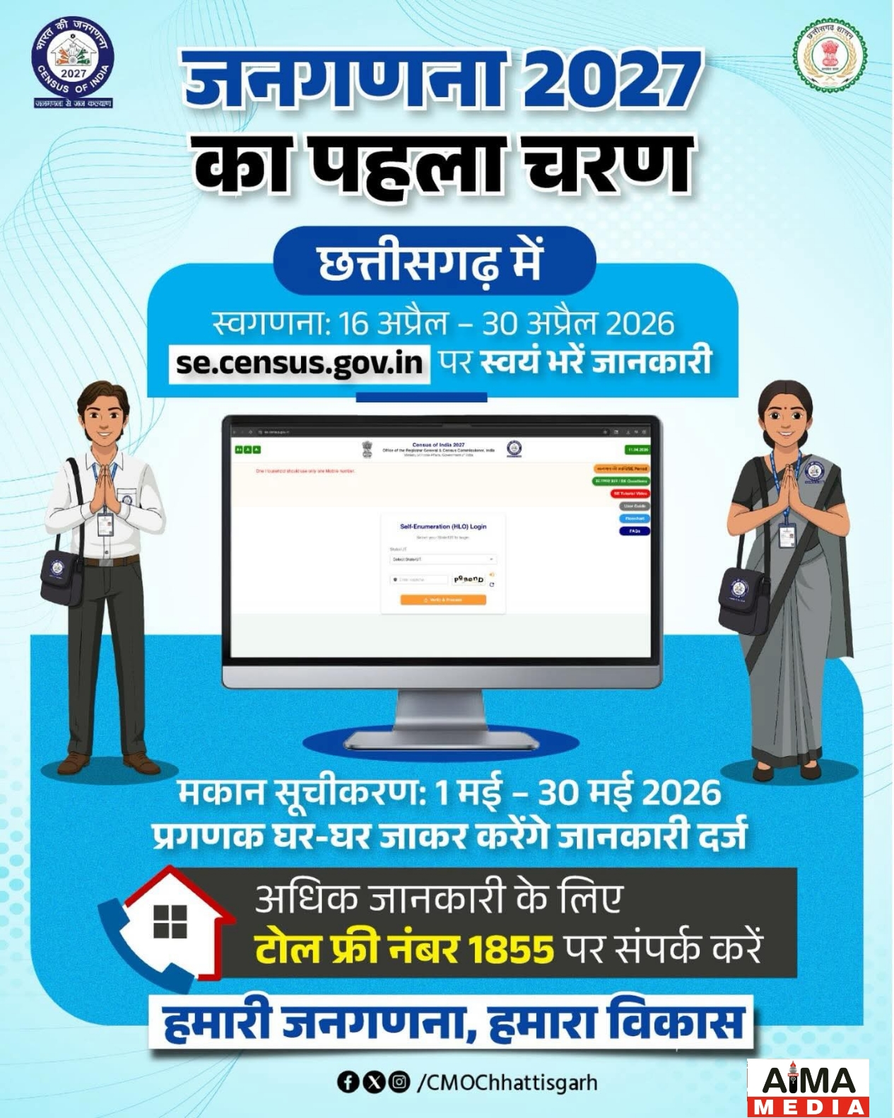 рдЫрддреНрддреАрд╕рдЧрдврд╝ рдореЗрдВ рдЬрдирдЧрдгрдирд╛ 2027 рдХрд╛ рдкреНрд░рдердо рдЪрд░рдг рд╢реАрдШреНрд░ рдкреНрд░рд╛рд░рдВрдн рд╣реЛрдиреЗ рдЬрд╛ рд░рд╣рд╛ рд╣реИред