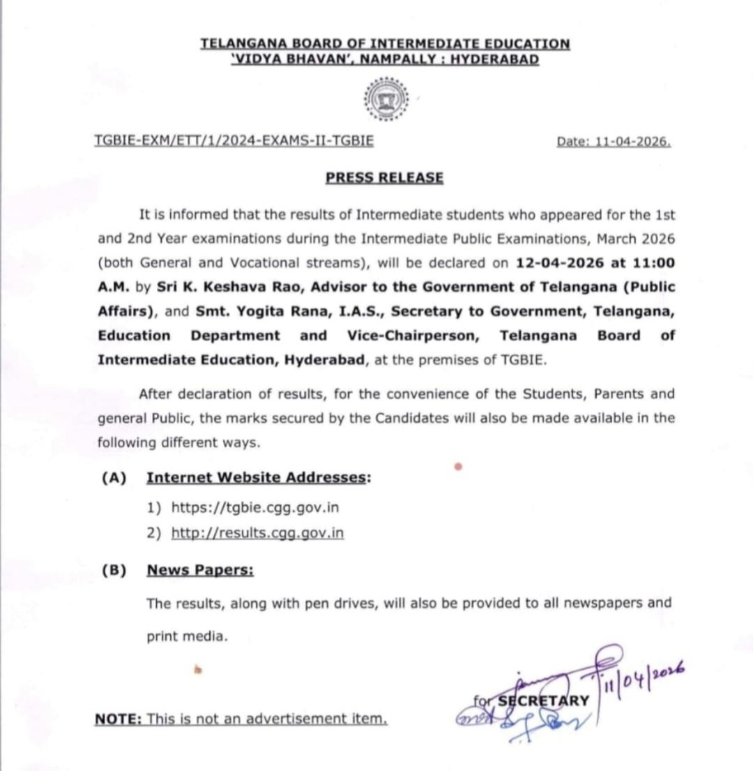 #newstodaydeshpradesh.. TELANGANA BOARD OF INTERMEDIATE EDUCATION