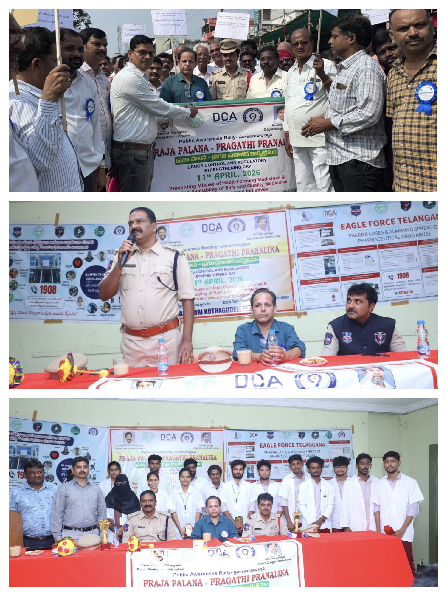 భద్రాద్రి కొత్తగూడెం జిల్లా, ఏప్రిల్ 11: (కానుక న్యూస్ జిల్లా ప్రతినిధి) ) తెలంగాణ ప్రభుత్వ కార్యక్రమం ప్రజా పాలన – ప్రగతి ప్రణాళిక'లో భాగంగా ఆరోగ్య వారోత్సవాల సందర్భంగా భద్రాద్రి కొత్తగూడెం జిల్లా డ్రగ్స్ కంట్రోల్ అడ్మినిస్ట్రేషన్ ఆధ్వర్యంలో అలవాటుగా మారే మందుల దుర్వినియోగంపై సమగ్ర అవగాహన సదస్సు ర్యాలీ నిర్వహించారు.మందుల నాణ్యత, లభ్యత నిబంధనల అమలును నిర్ధారించడం ఈ కార్యక్రమం యొక్క ప్రధాన ఉద్దేశ్యం. భద్రాద్రి కొత్తగూడెం జిల్లా కేంద్రంలో జరిగిన ఈ అవగాహన సదస్సులో డ్రగ్స్ కంట్రోల్ విభాగం అధికారులు ఈ క్రింది అంశాలపై వివరణాత్మక సమాచారాన్ని అందించారు: అలవాటుగా మారే మందుల దుర్వినియోగం వాటి వల్ల కలిగే దుష్ప్రభావాలపై అవగాహన. యాంటీబయాటిక్స్ దుర్వినియోగం యాంటీ-మైక్రోబియల్ రెసిస్టెన్స్ (సూక్ష్మజీవుల నిరోధకత)షెడ్యూల్ హెచ్ 2 మందుల కోసం క్యుఆర్ కోడ్ వెరిఫికేషన్‌ను ప్రోత్సహించడం.