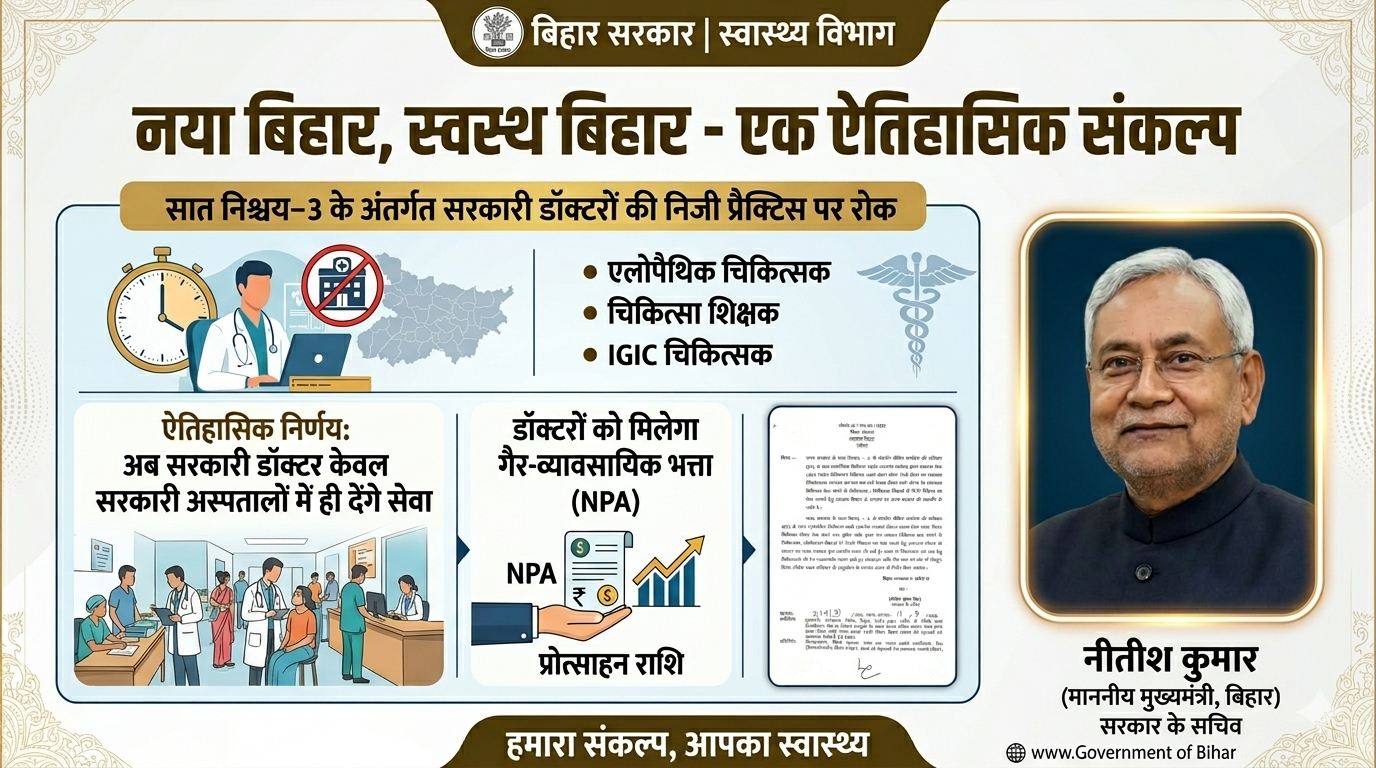 "बिहार में स्वास्थ्य सुधार की दिशा में एक साहसिक कदम" ​" डॉक्टरों की निजी प्रैक्टिस पर रोक: "क्या बिहार की सरकारी स्वास्थ्य व्यवस्था की तकदीर बदलेगी?