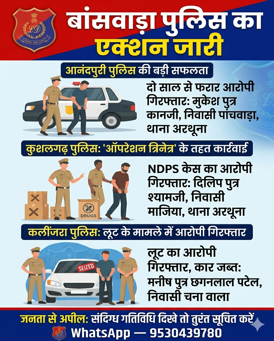 : #BanswaraNews #BanswaraPolice #RajasthanPolice #CrimeUpdate #PoliceAction #BreakingNews #Arrested #BanswaraDistrict
