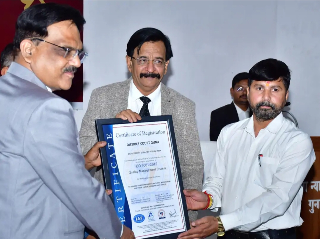 गुना जिला कोर्ट को मिला ISO सर्टिफिकेट मिला: क्वालिटी मैनेजमेंट और एनवायरनमेंटल मैनेजमेंट सिस्टम में हासिल की उपलब्धि