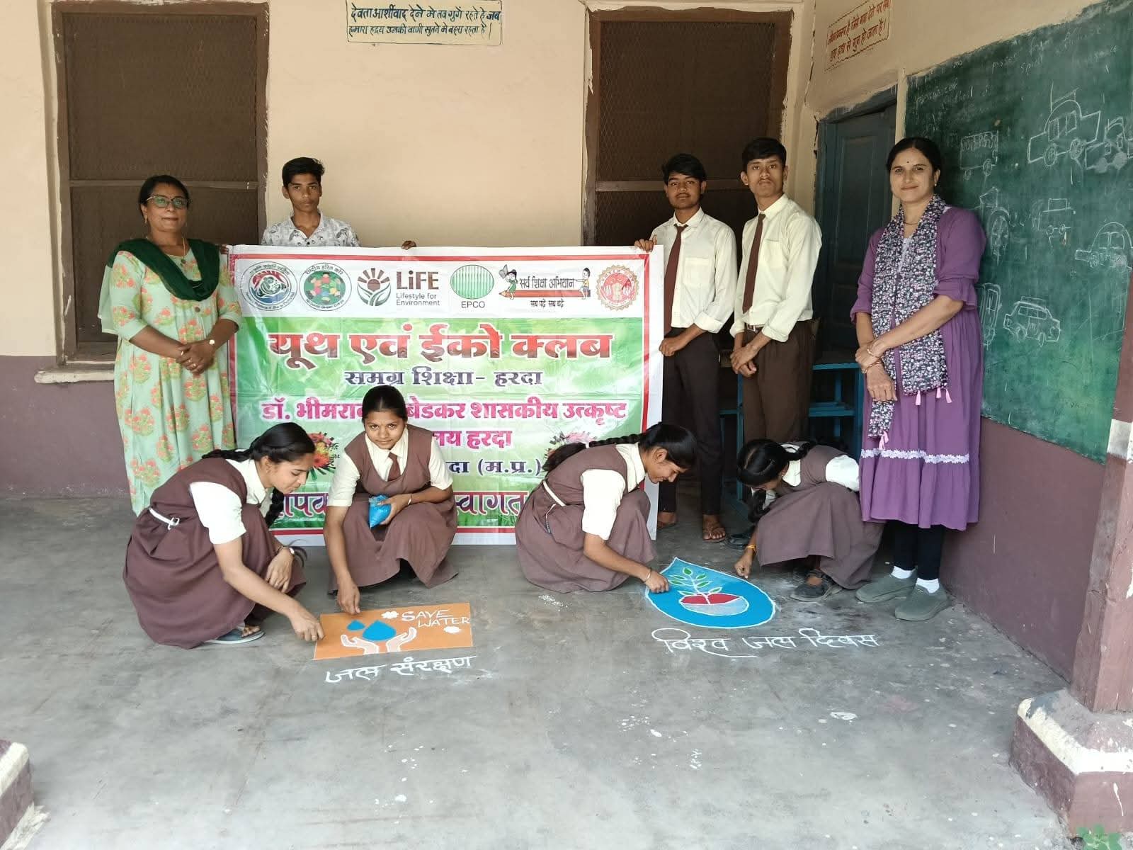 विद्यार्थीओं ने रंगोली, चित्रकला व नारा लेखन से दिया जल संरक्षण का संदेश
