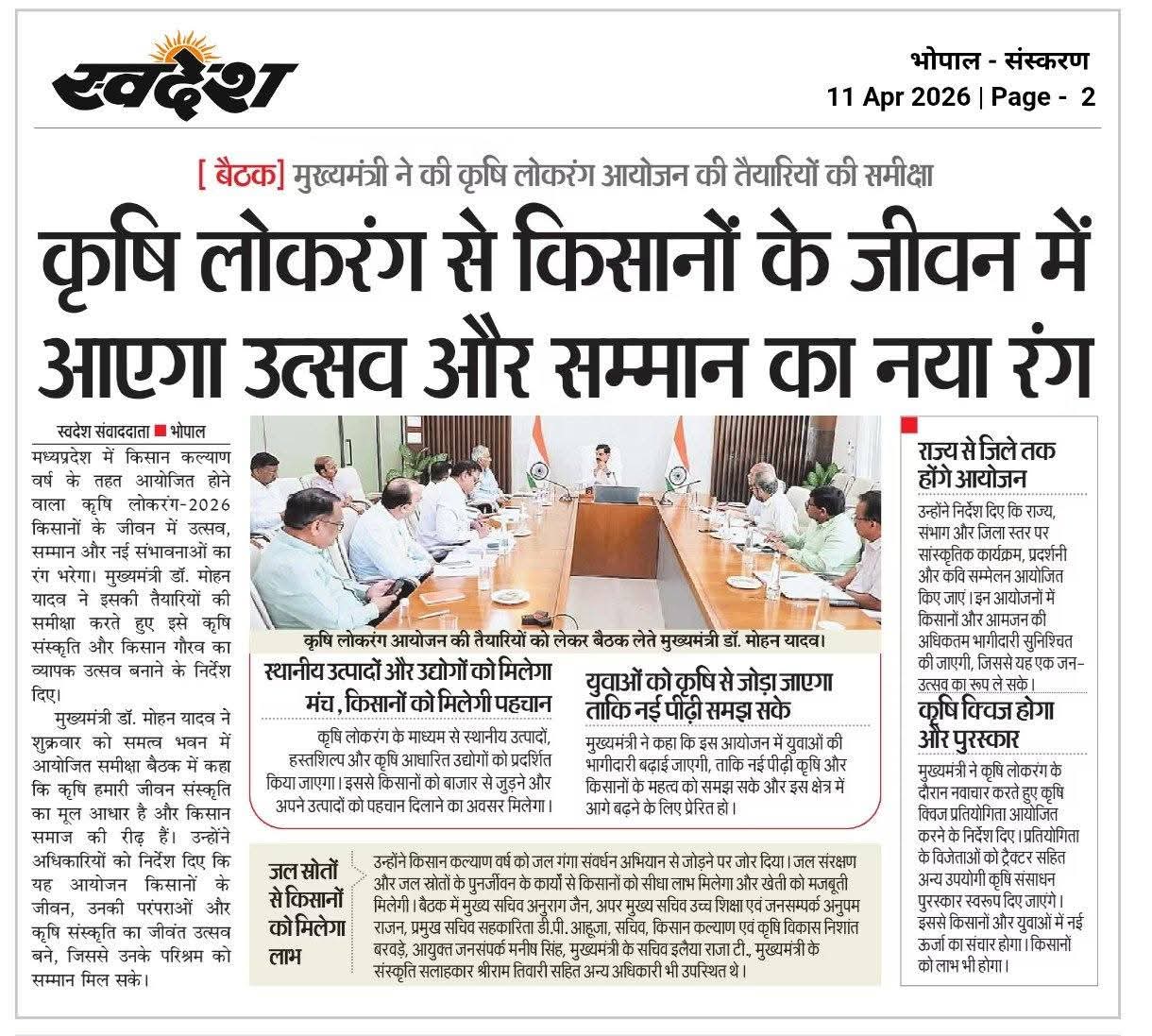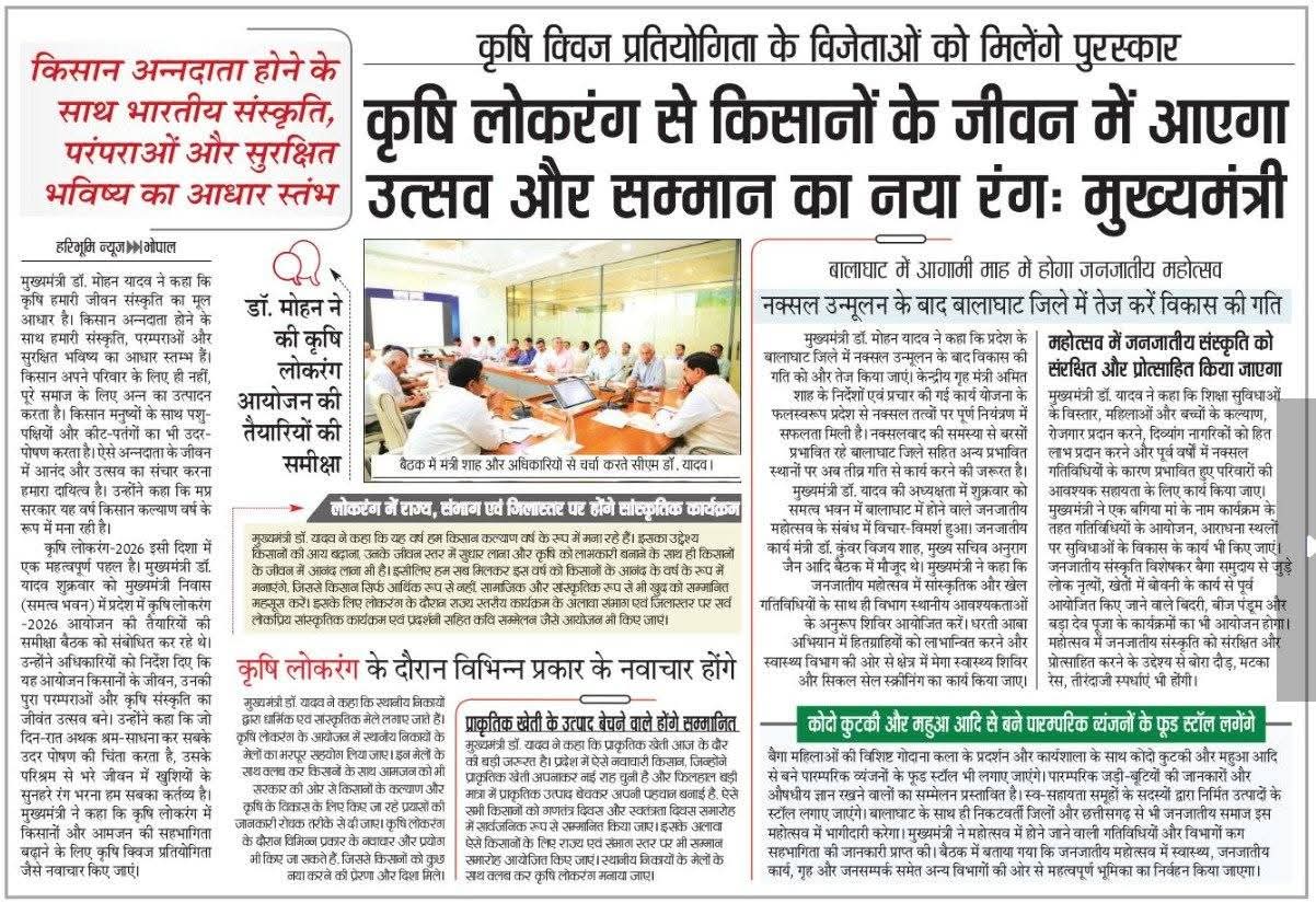 मुख्यमंत्री डॉ. यादव ने की कृषि लोकरंग आयोजन की तैयारियों की समीक्षा