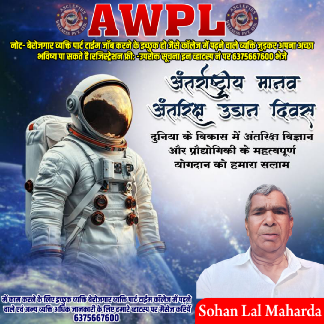 अंतरिक्ष दिन आओ हमारे साथ ज़ुड़े स्वस्थ जीवन अपनाये मेसेज करे 6375667600