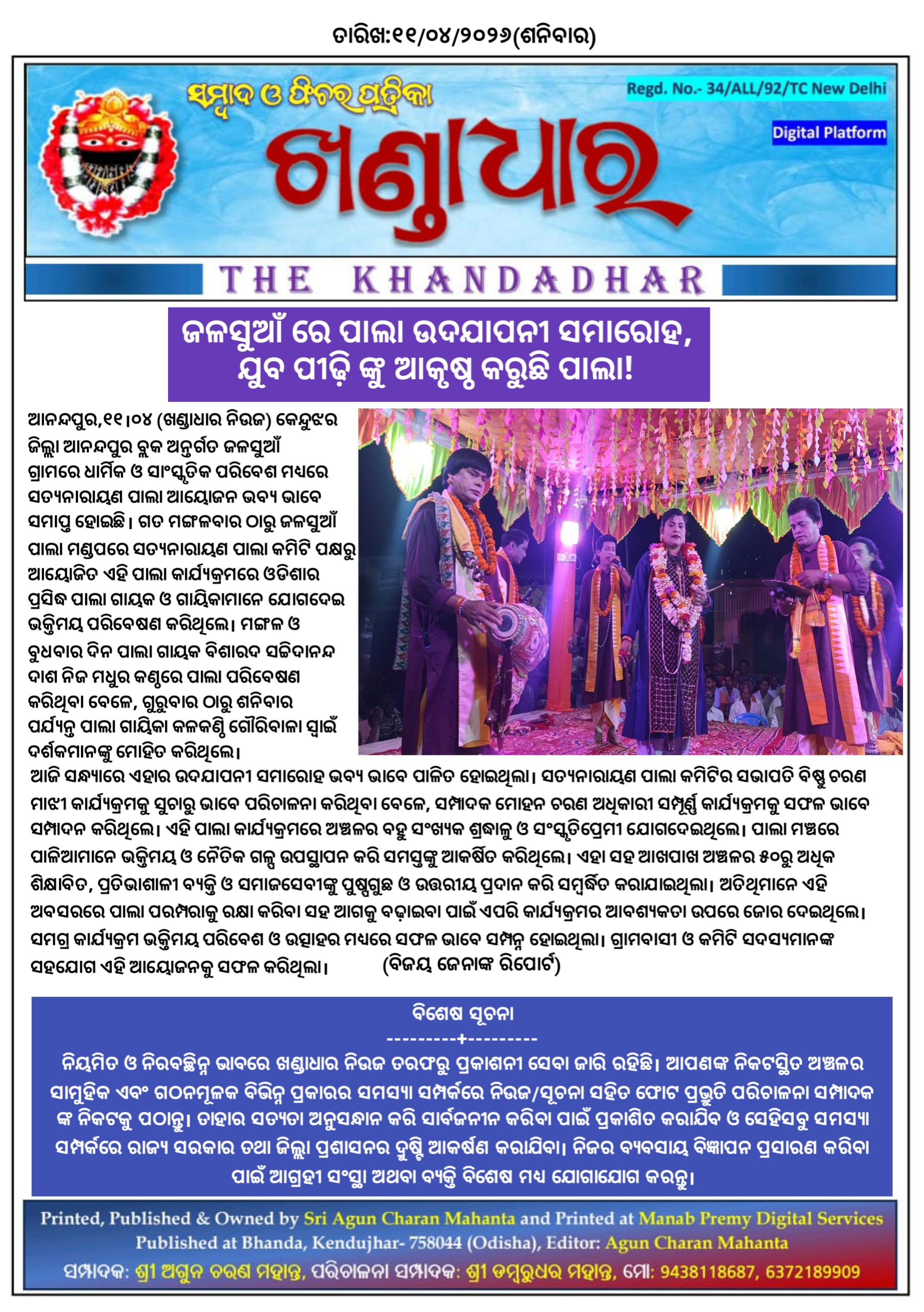ଖଣ୍ଡାଧାର ନିଉଜ- ବିଜୟ ଜେନାଙ୍କ ରିପୋର୍ଟ।