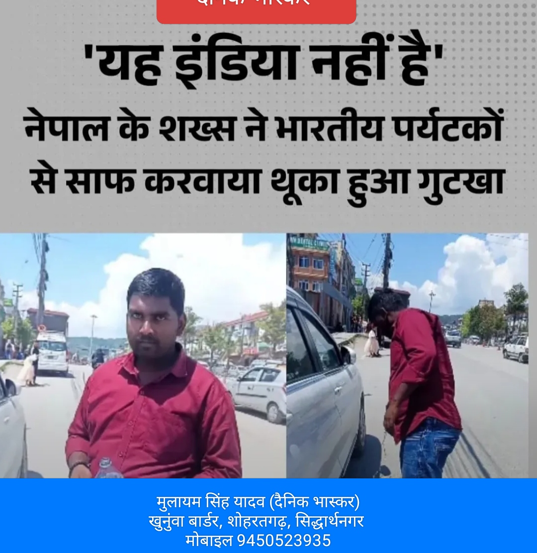यह इंडिया नहीं है” नेपाल के शख़्स ने भारतीय पर्यटकों से साफ करवाया थूका हुआ गुटखा https://dainik.bhaskar.com/iPSJjmcMlXb