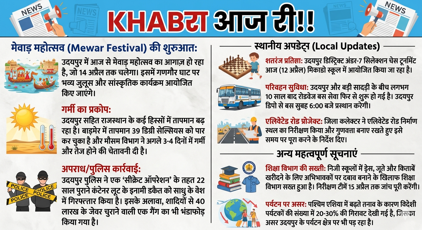 KHABरा आज री!!'': मेवाड़ महोत्सव की शुरुआत, गर्मी का प्रकोप, पुलिस की बड़ी कामयाबी और बहुत कुछ! उदयपुर की हर बड़ी खबर||
