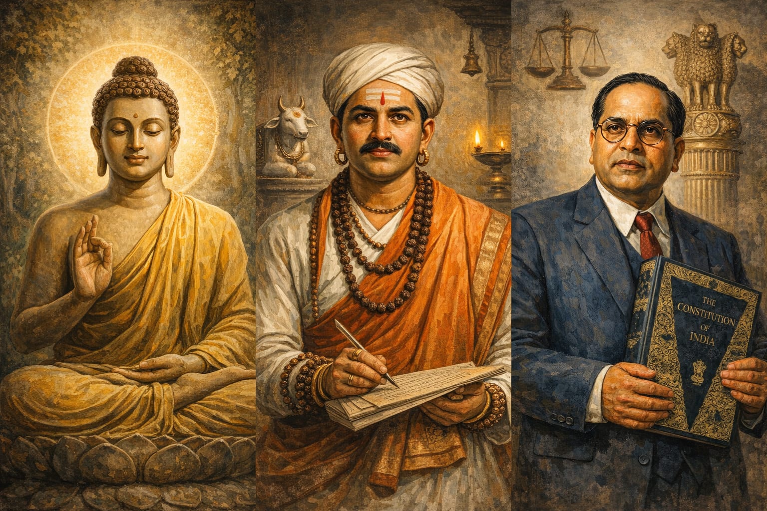 ಗೌತಮ ಬುದ್ಧ, ಬಸವಣ್ಣ, ಮತ್ತು ಡಾ. ಬಿ. ಆರ್. ಅಂಬೇಡ್ಕರ್ ,