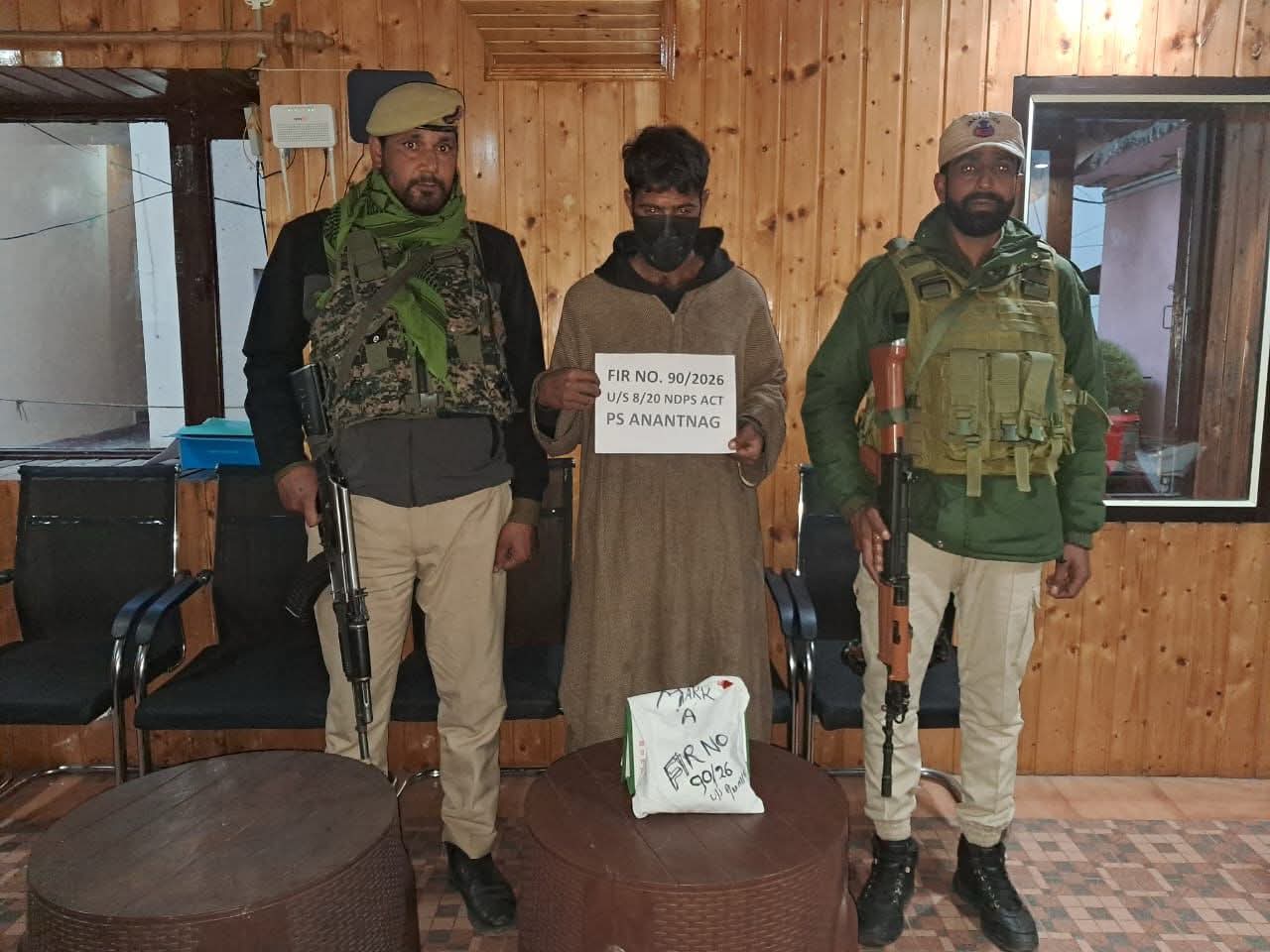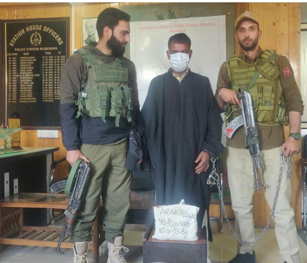 Moreover during naka checking at Waghama, PS Bijbehara apprehended Aijaz Ahmad Mantoo of Waghama and recovered 488 grams of charas-like substance from his possession. In this connection, FIR No. 88/2026 has been registered.