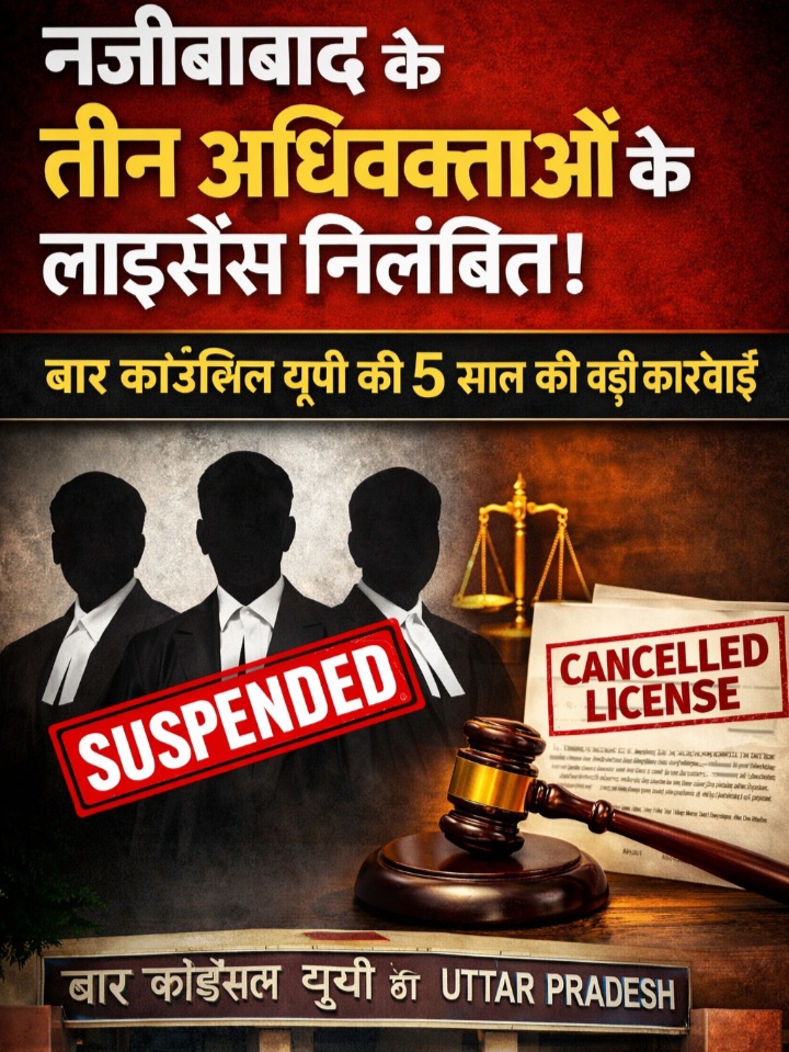 नजीबाबाद के तीन अधिवक्ताओं के लाइसेंस निलंबितः बार काउंसिल उत्तर प्रदेश ने 5 साल के लिए की कार्रवाई