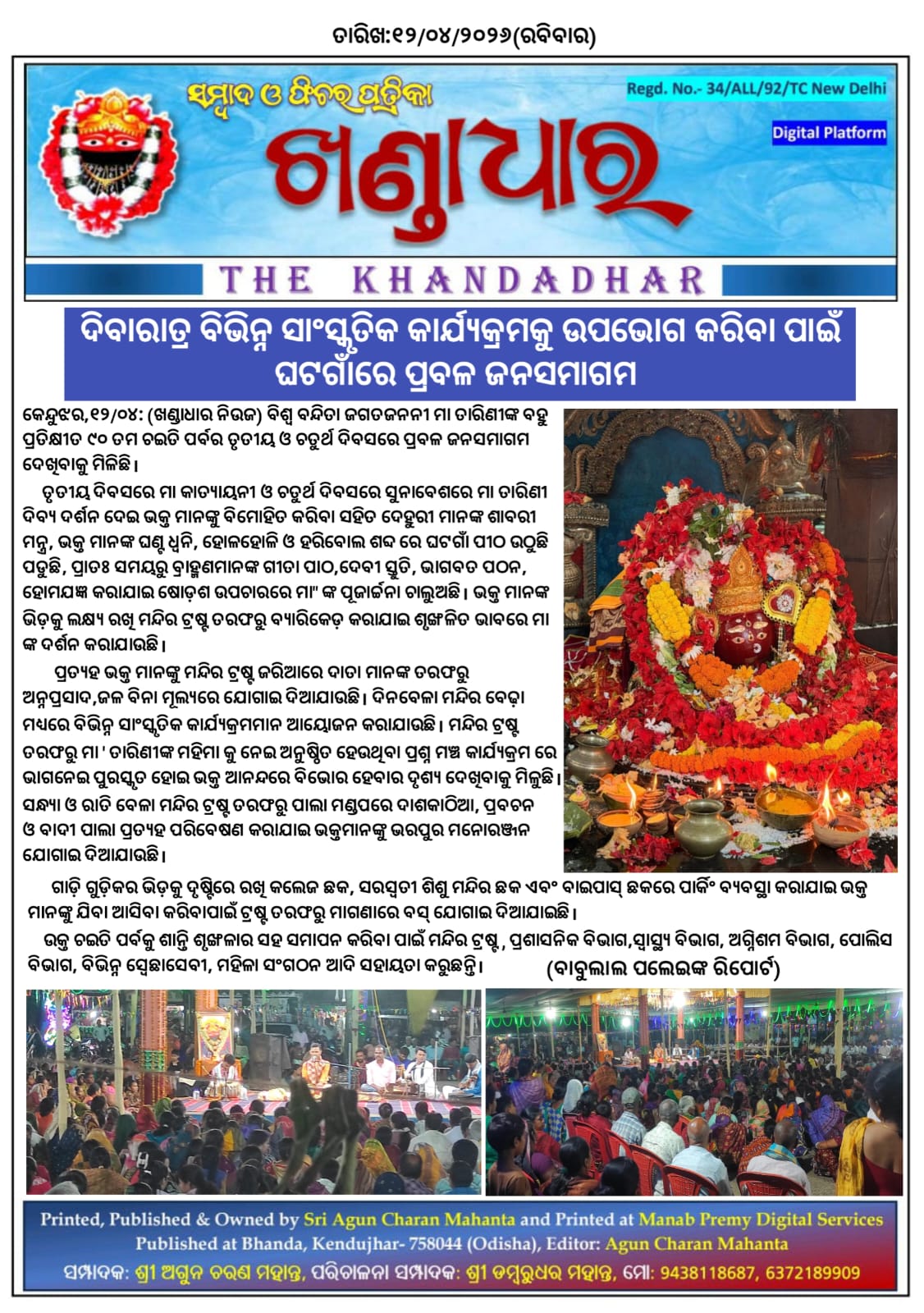 ମା ତାରିଣୀଙ୍କ ୯୦ ତମ ଚଇତି ପର୍ବ ଉପଲକ୍ଷେ