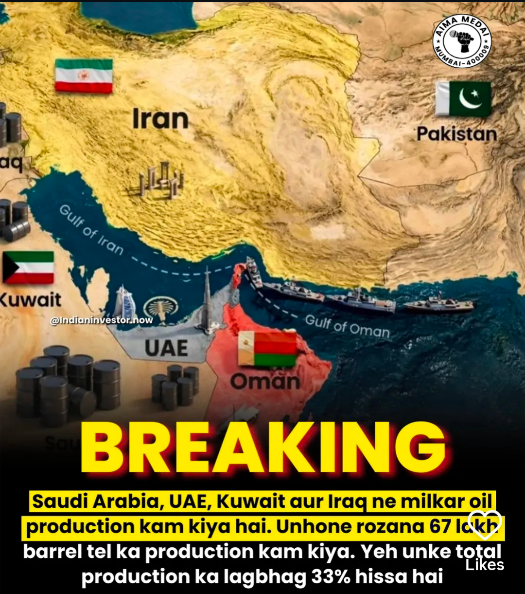 Saudi Arabia, UAE, Kuwait aur Irag ne millkar oil production kam kiya hai.Unhone rozana 671