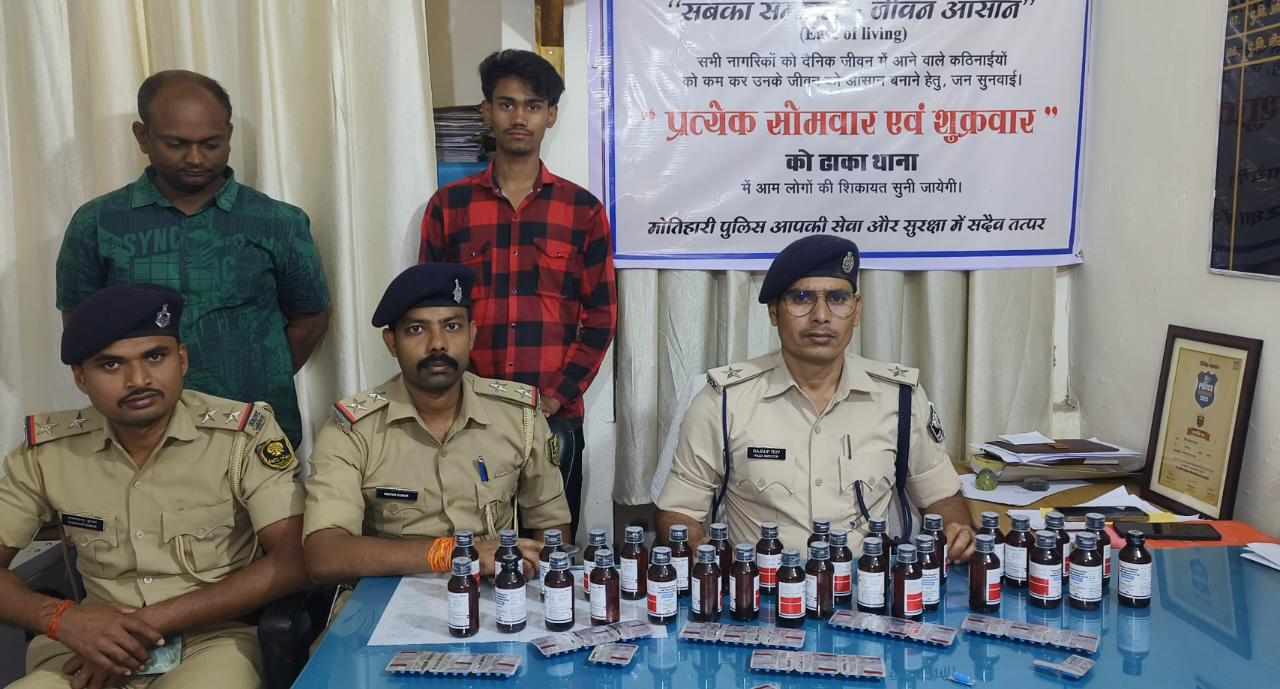 ✍️ कल दिनांक 12 अप्रैल को ढाका थानाध्यक्ष राजरूप राय ने गुप्त सुचना के आधार पर 32 पीस प्रतिबंधित कफ सीरप एवं 174 पीस प्रतिबंधित नशीला टैबलेट के साथ दो दवा कारोबारी को गिरफ्तार किया है , ध्यान देने वाली बात यह है कि बिहार में जब से शराब बंदी हुई है तब से नशे के आदी लोग विभिन्न अन्य तरीकों से अपनी जरूरत पूरी करने में लगे हुए हैं और कुछ लोग बिहार को नशीला बिहार बनाने में सहयोगी है - न्यूज विकाश चन्द्र नीरज