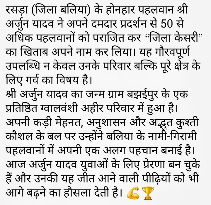 ब्रेकिंग न्यूज़ बलिया रसडा जो की बलिया जिले में वहां के पहलवान 50 पहलवानों को हराकर प्रथम विजेता बना