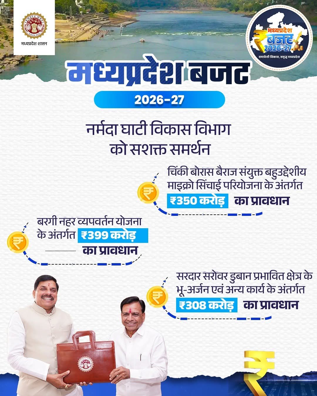 मध्यप्रदेश बजट वर्ष 2026-27 में नर्मदा घाटी विकास विभाग को मिला मजबूत समर्थन